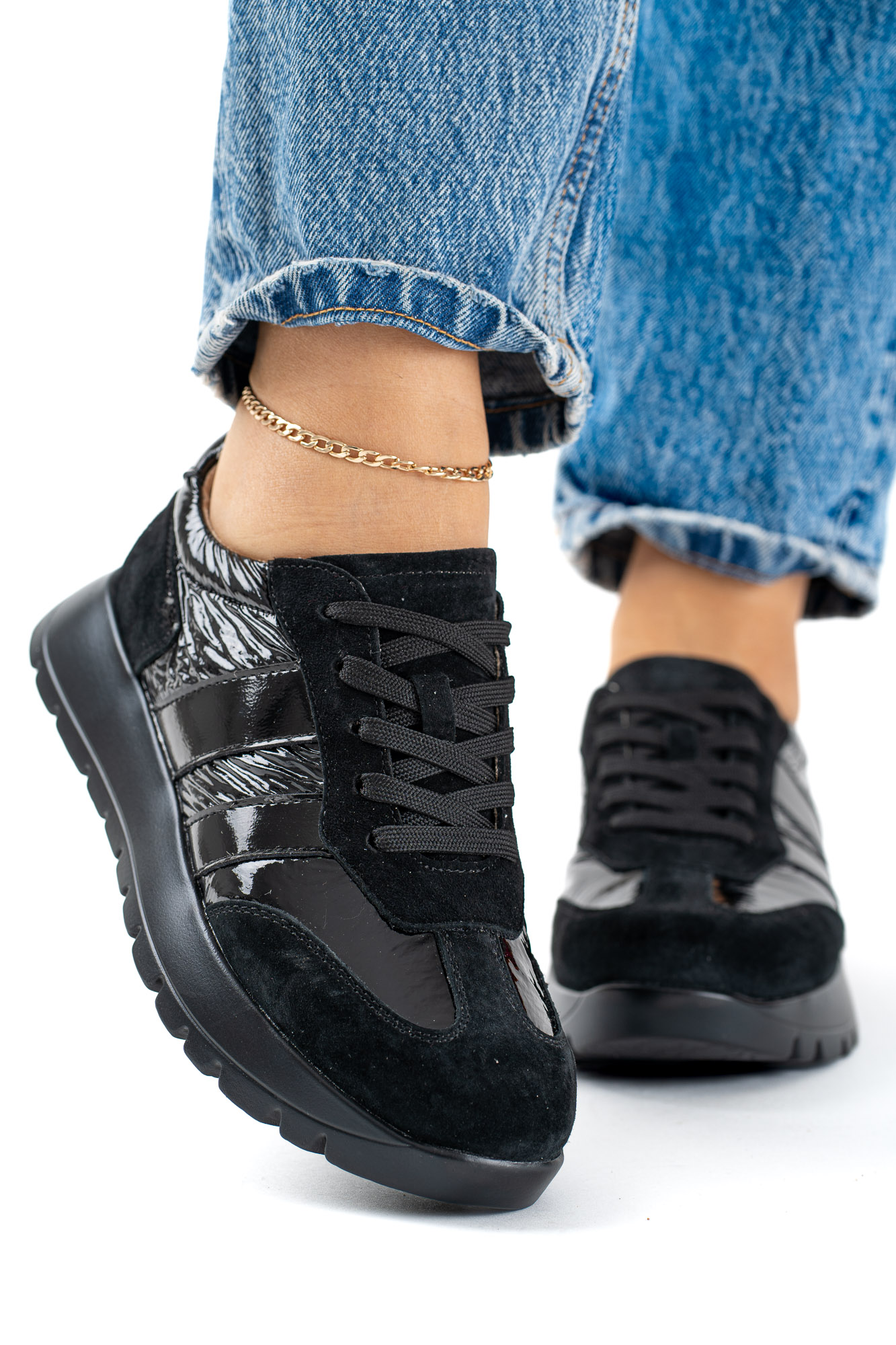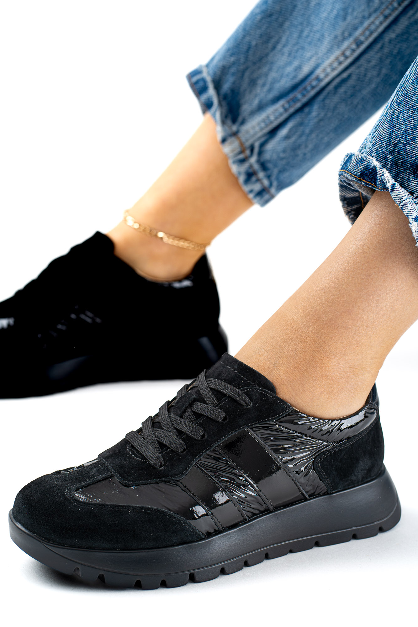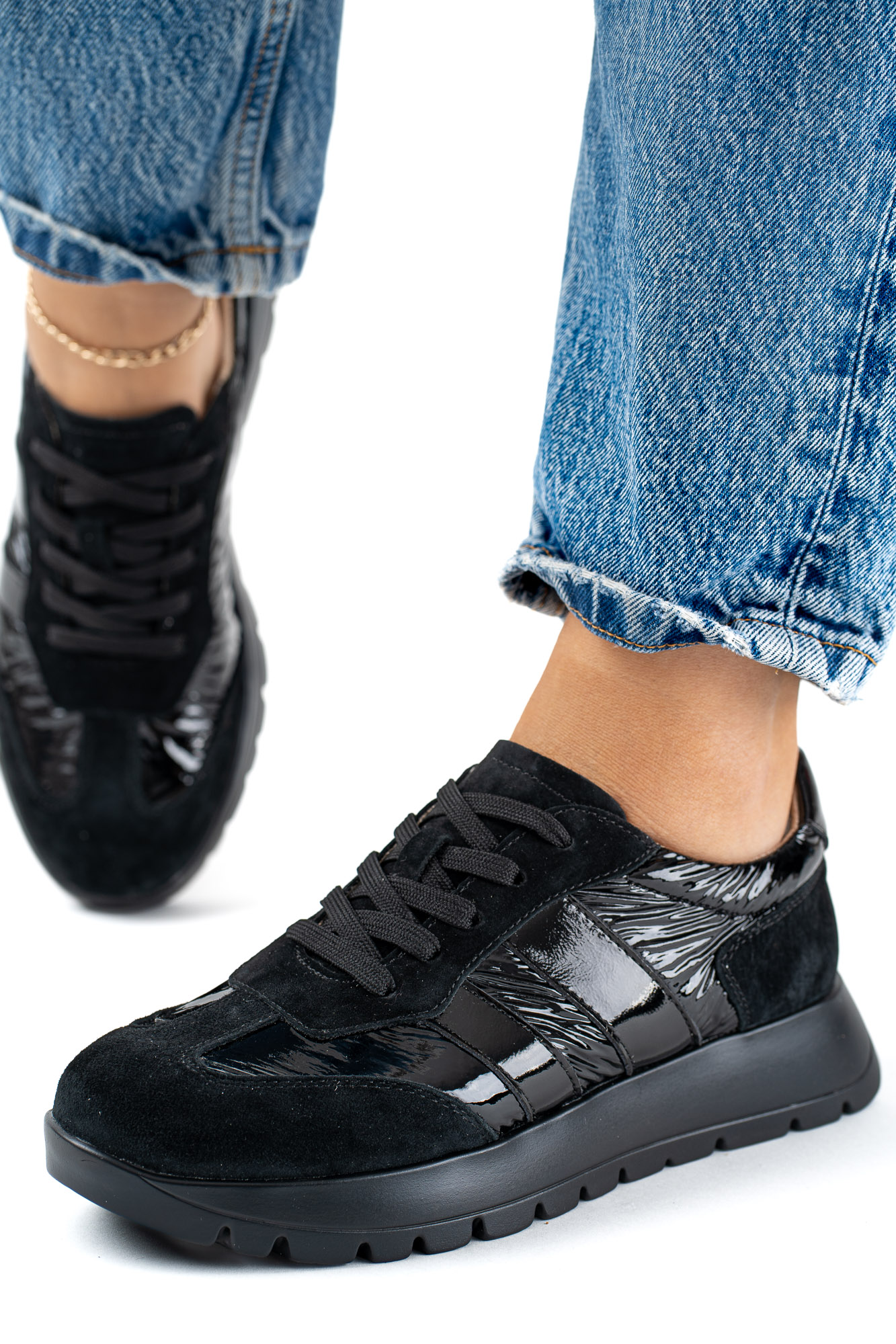 Czarne buty sportowe sznurowane damskie Triada