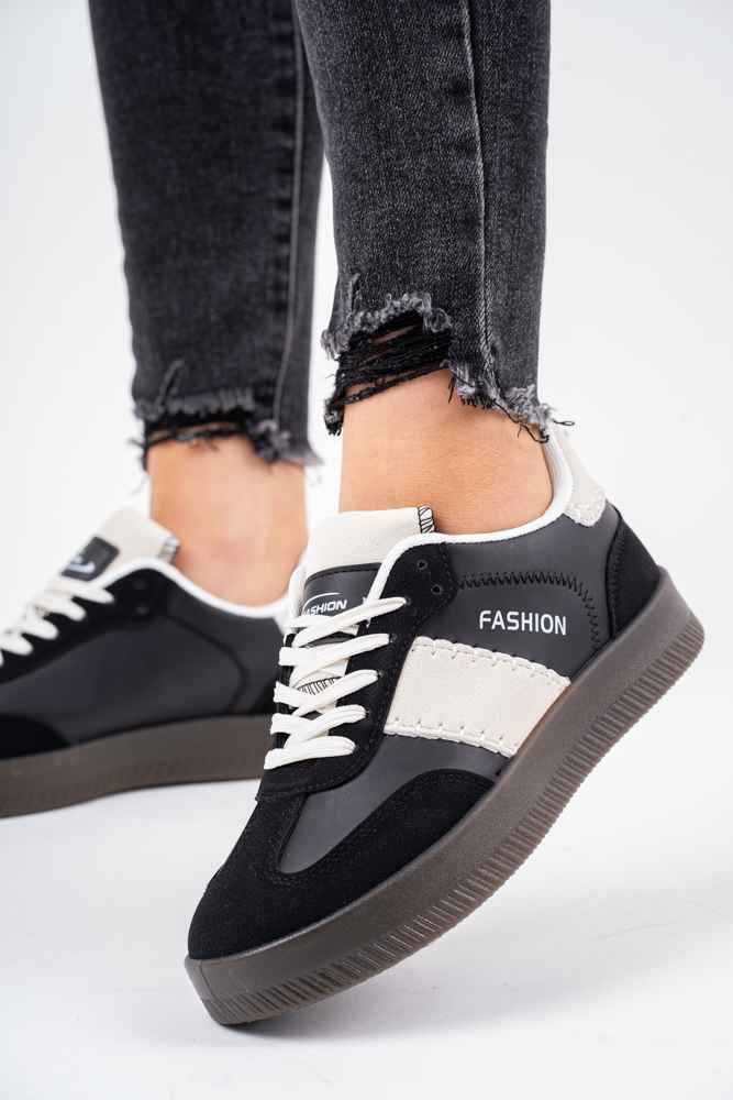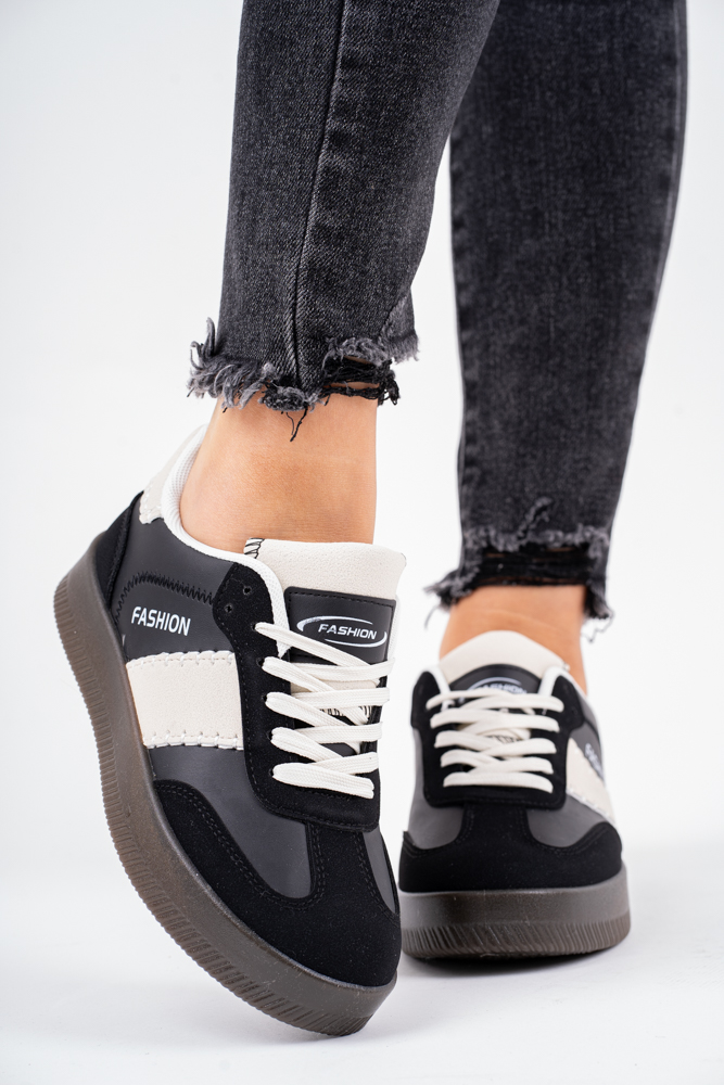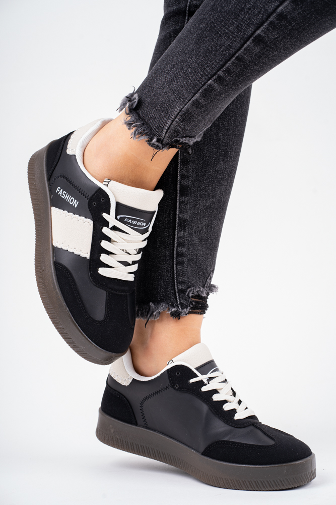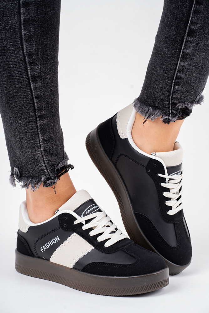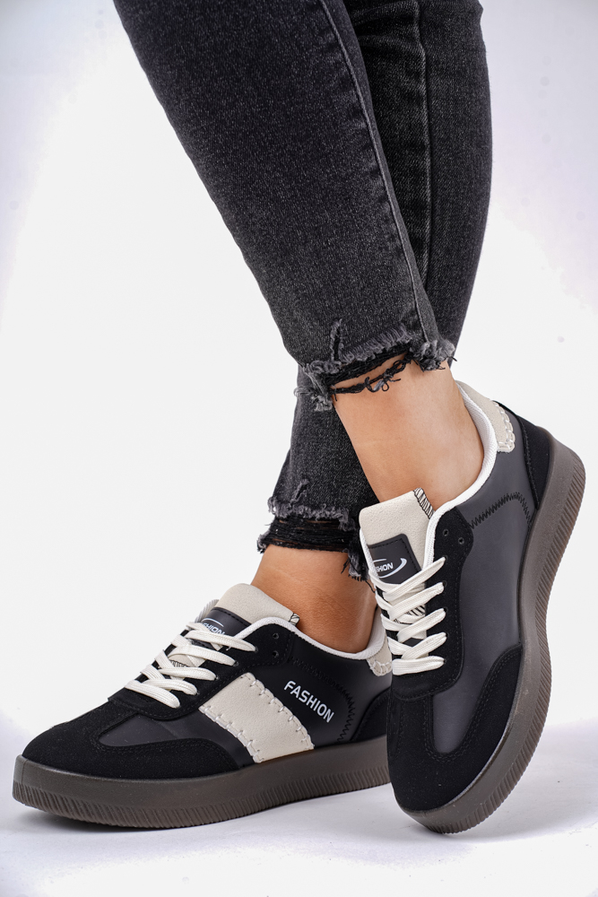 Czarne trampki damskie na grubej podeszwie fashion