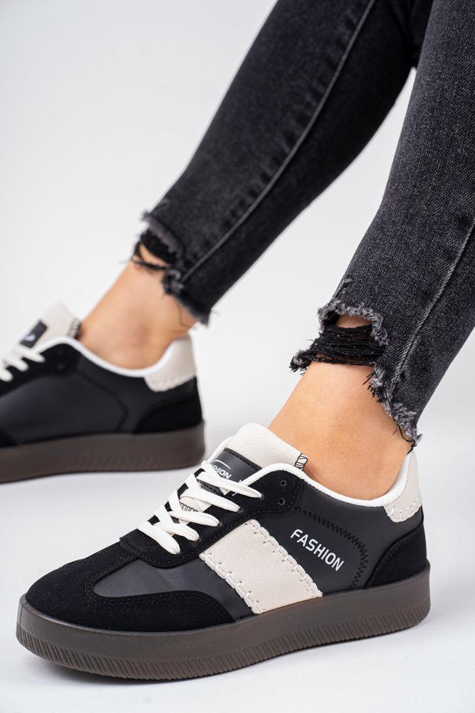 Modne trampki damskie z białymi wstawkami, oraz przeszyciami