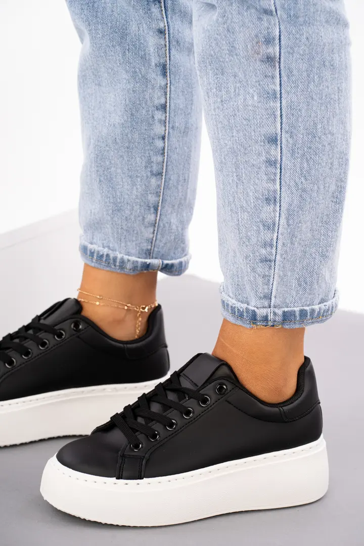 Sklep Czarne trampki damskie na grubej podeszwie