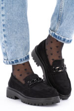Czarne zamszowe mokasyny z łańcuszkiem Teneza