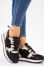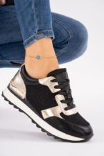 Czarne buty sportowe sneakersy damskie z złotą wstawką w pięcie