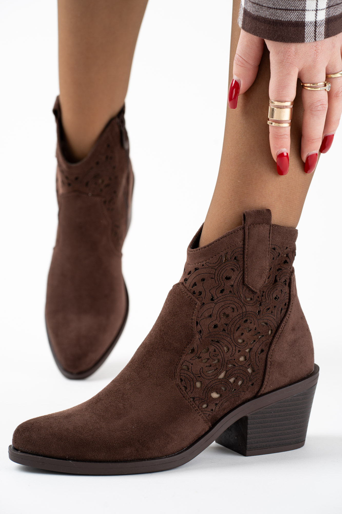 Sklep Czekoladowe botki kowbojki damskie na obcasie Ażurowe