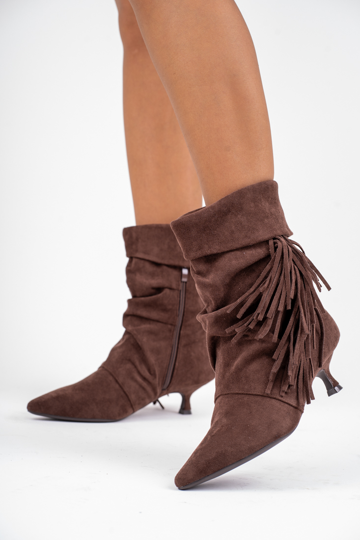 Sklep Czekoladowe krótkie botki damskie na szpilce