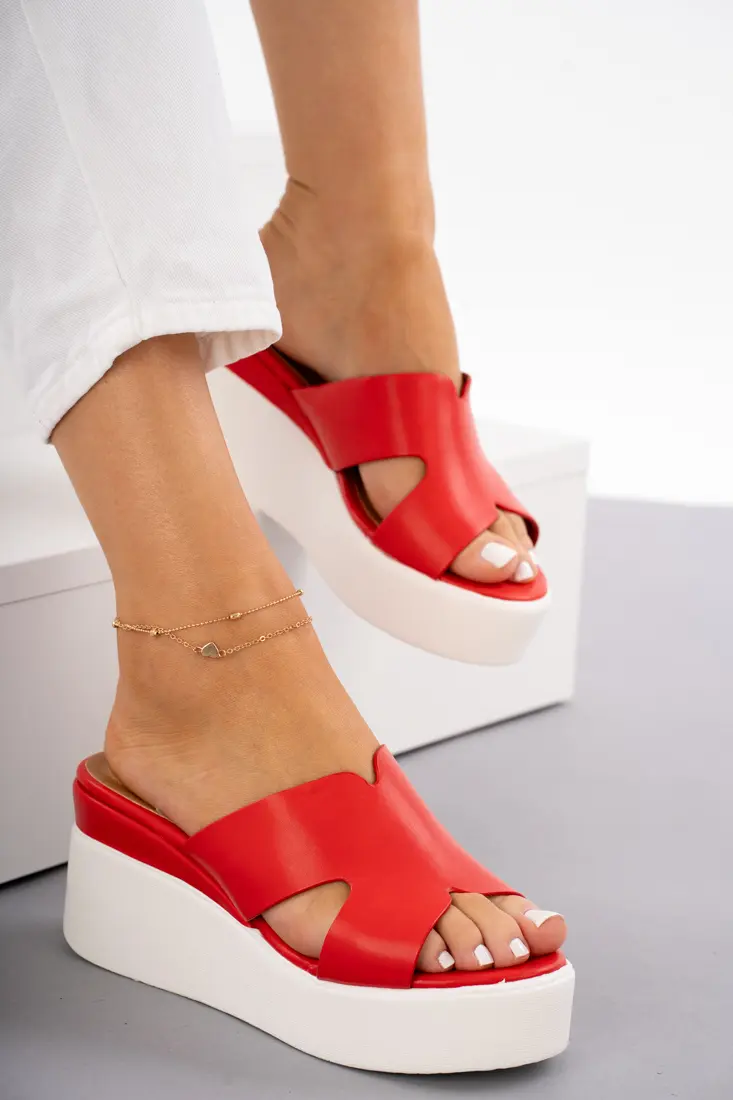 Sklep Czerwone klapki na koturnie lekkie wsuwane damskie