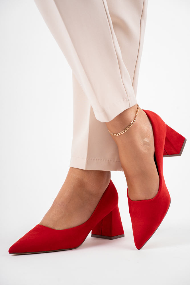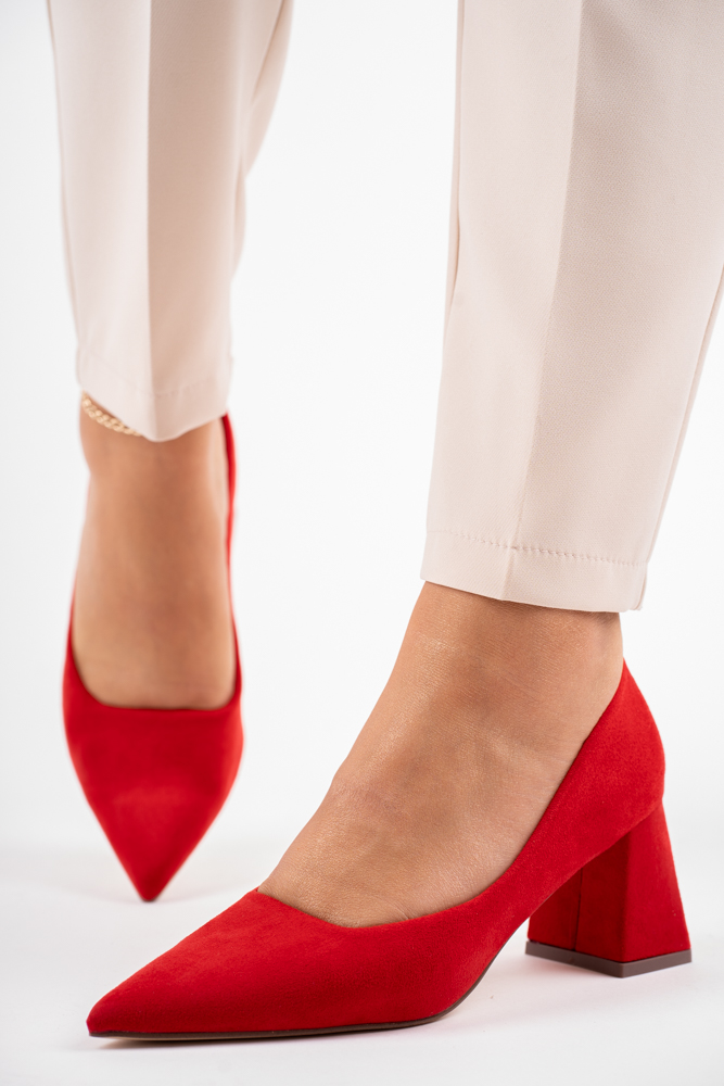 Sklep Czerwone zamszowe czółenka damskie na niskim szerokim obcasie
