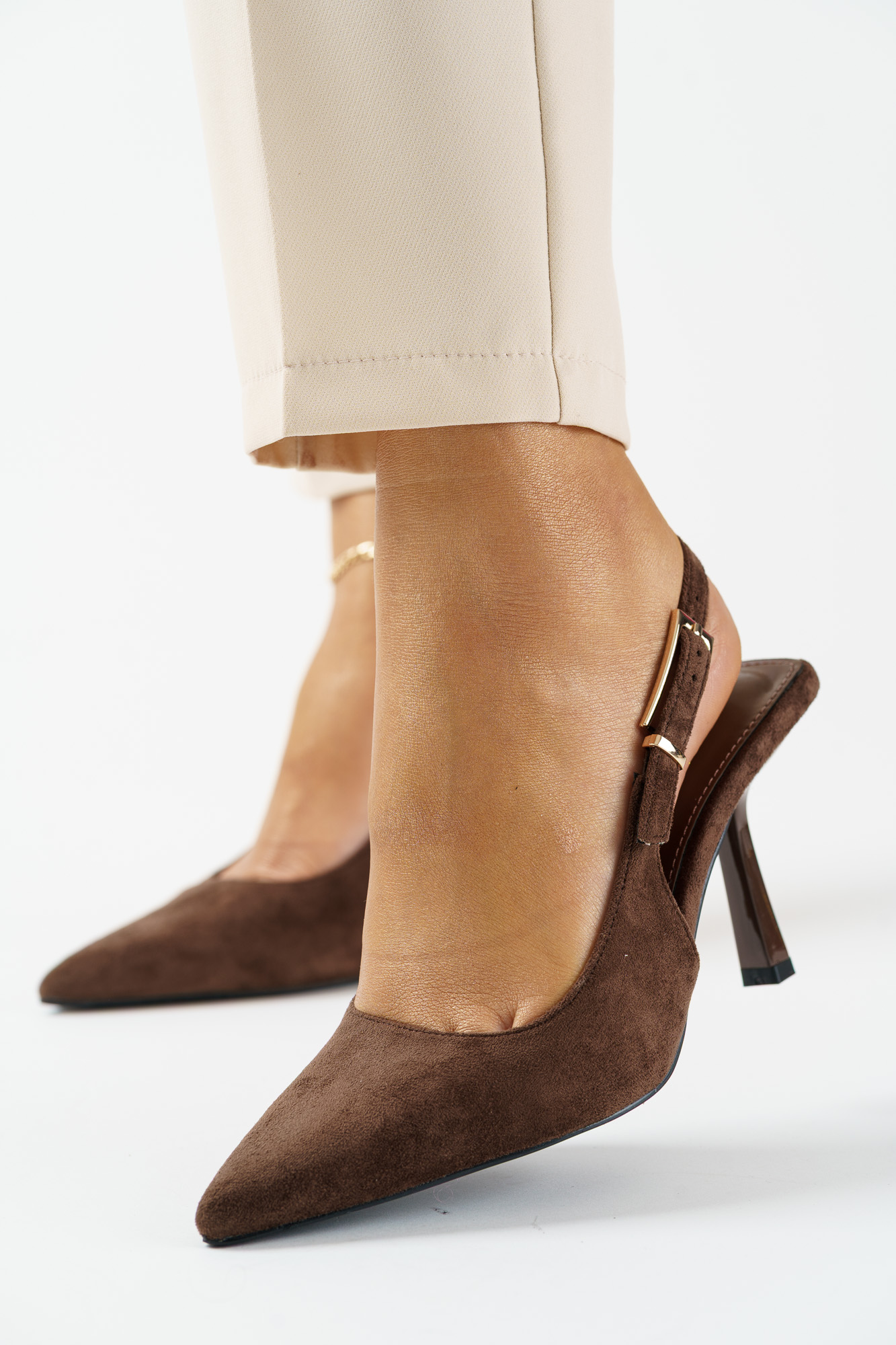 Sklep Czółenka damskie z odkrytą piętą na szpilce brązowe