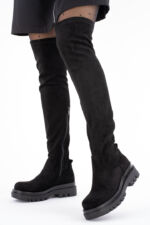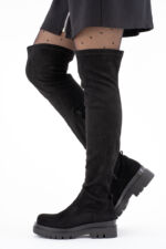 Sklep Długie zamszowe kozaki na płaskim grubym spodzie Tives
