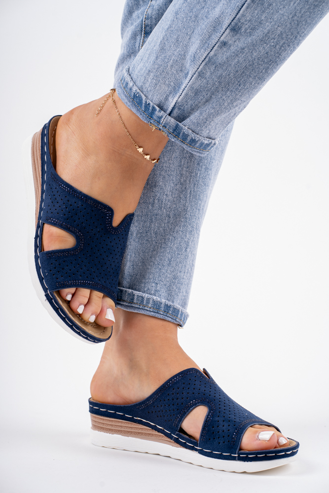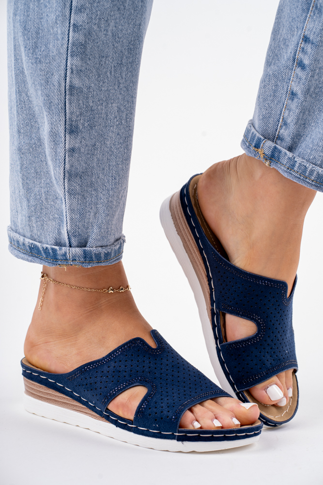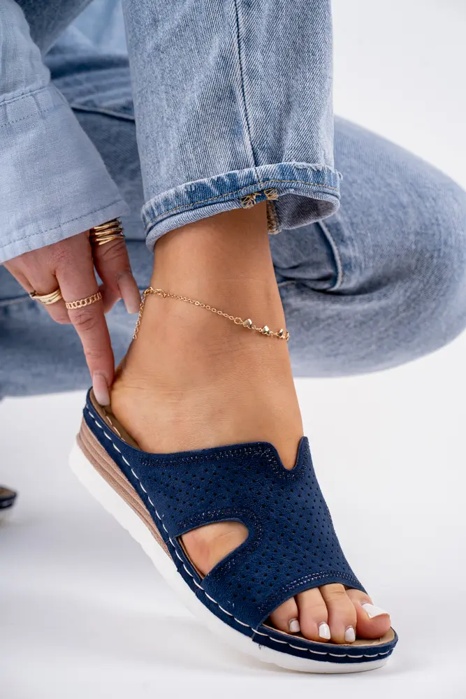 Granatowe klapki damskie na niskiej koturnie