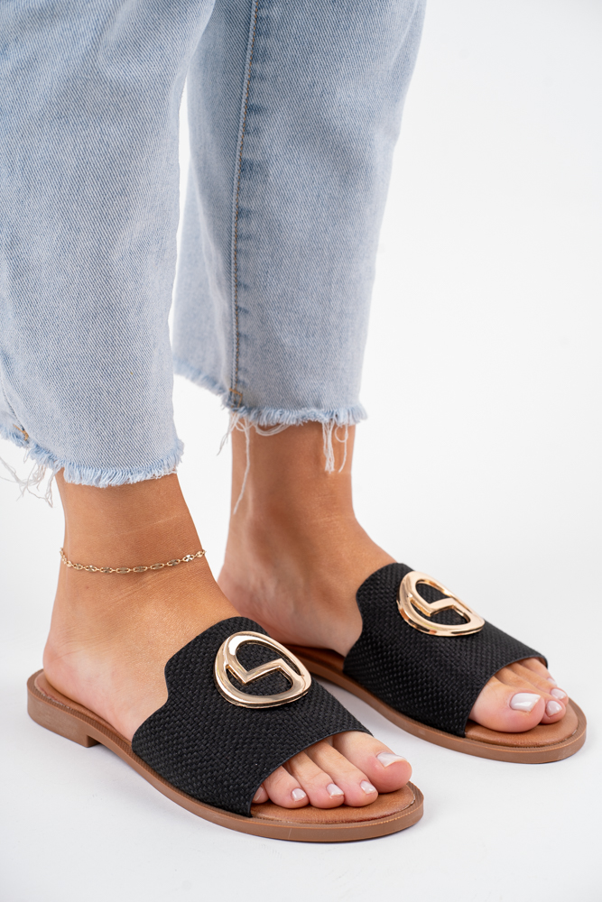 Klapki damskie na płaskim spodzie z kółkiem czarne