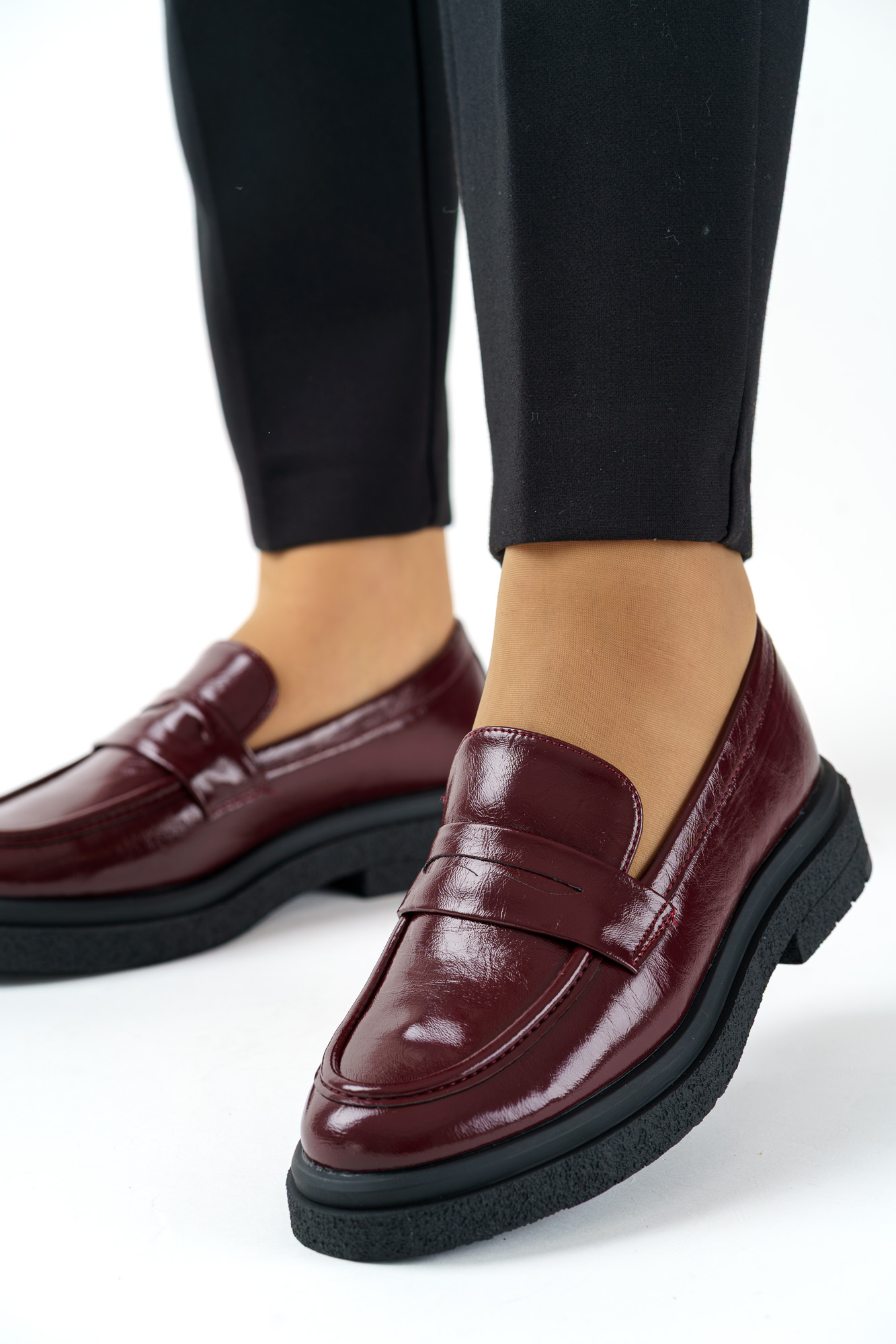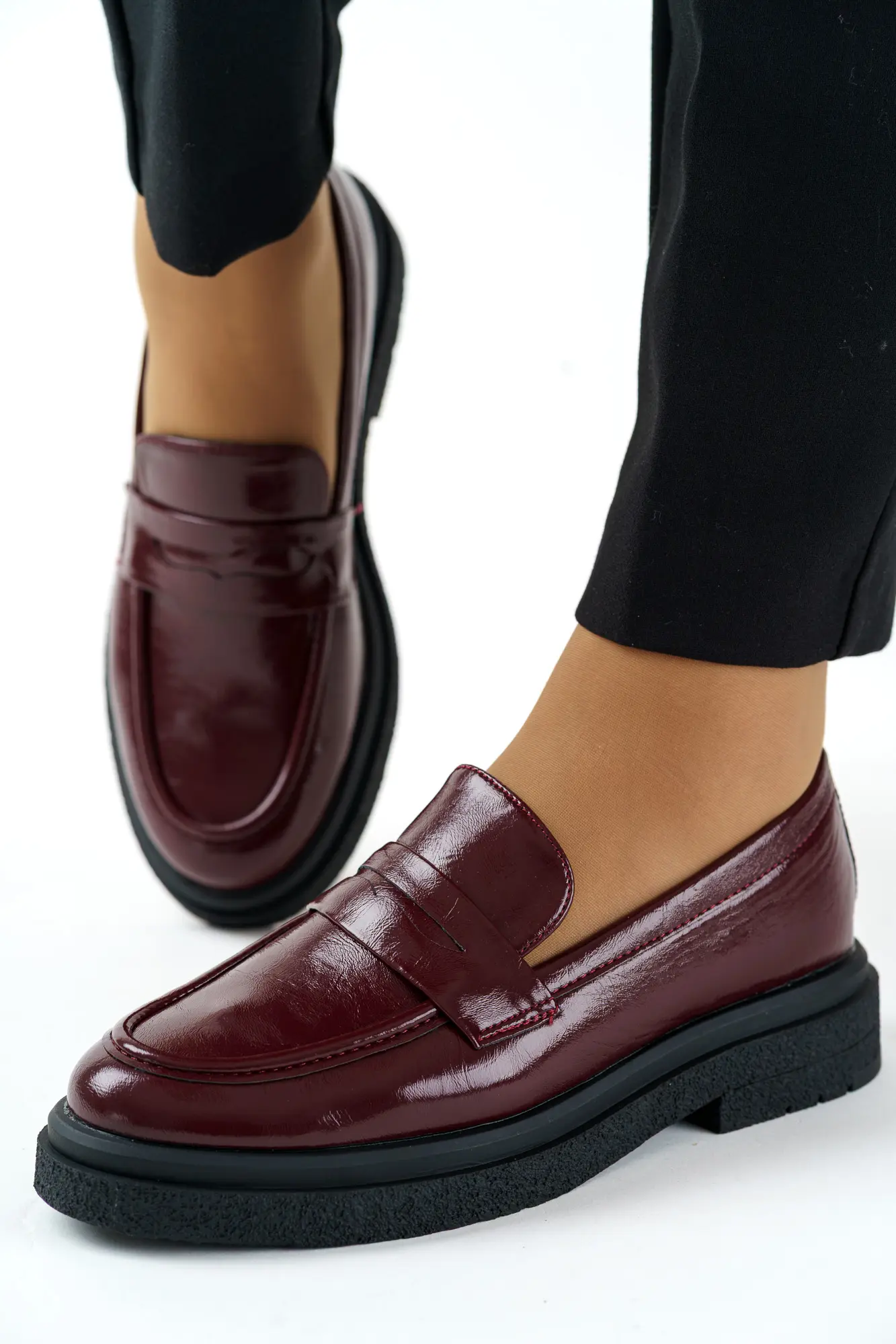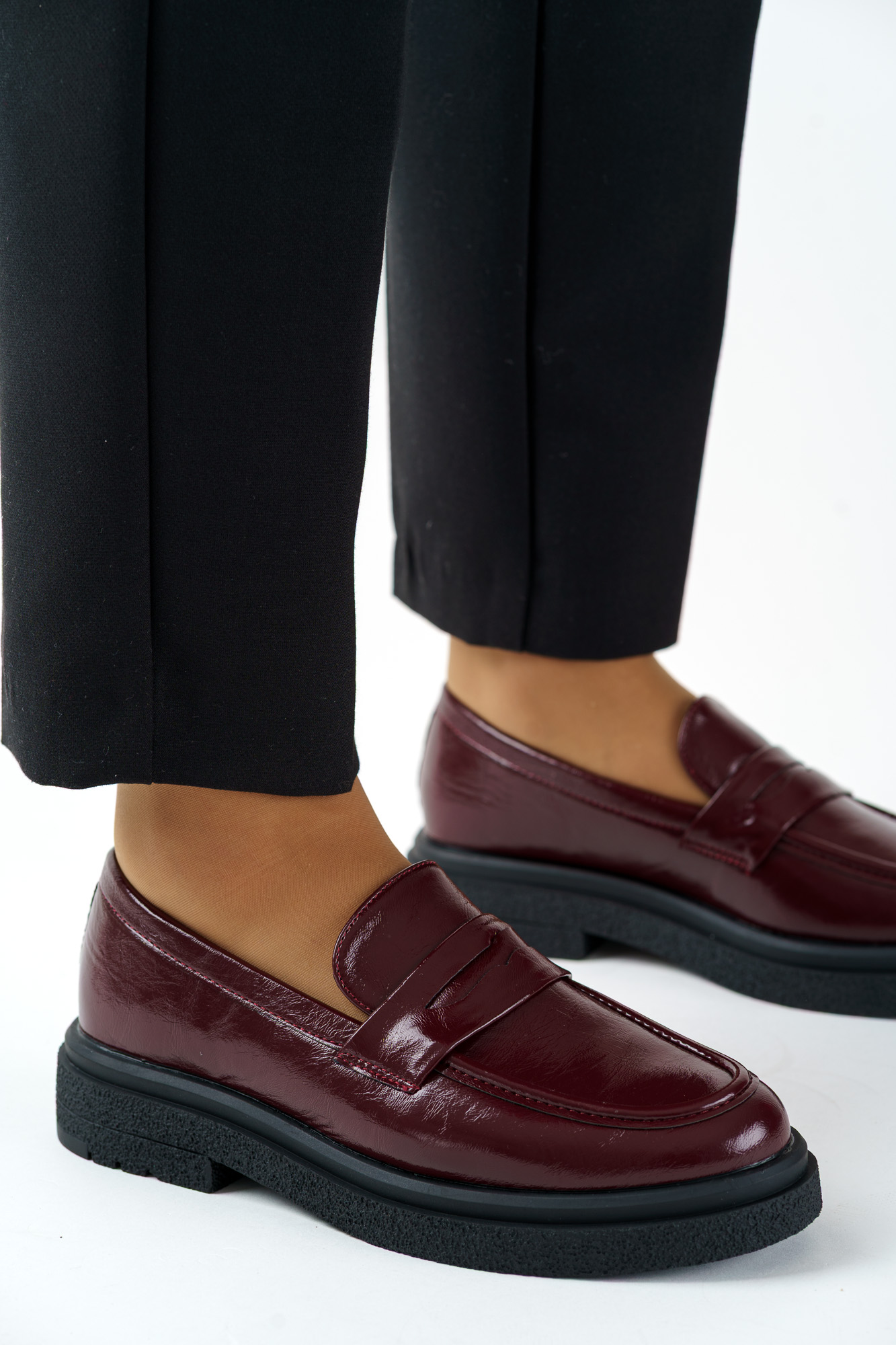 Mokasyny damskie na płaskim spodzie w kolorze bordo to wygodne i uniwersalne obuwie na co dzień.