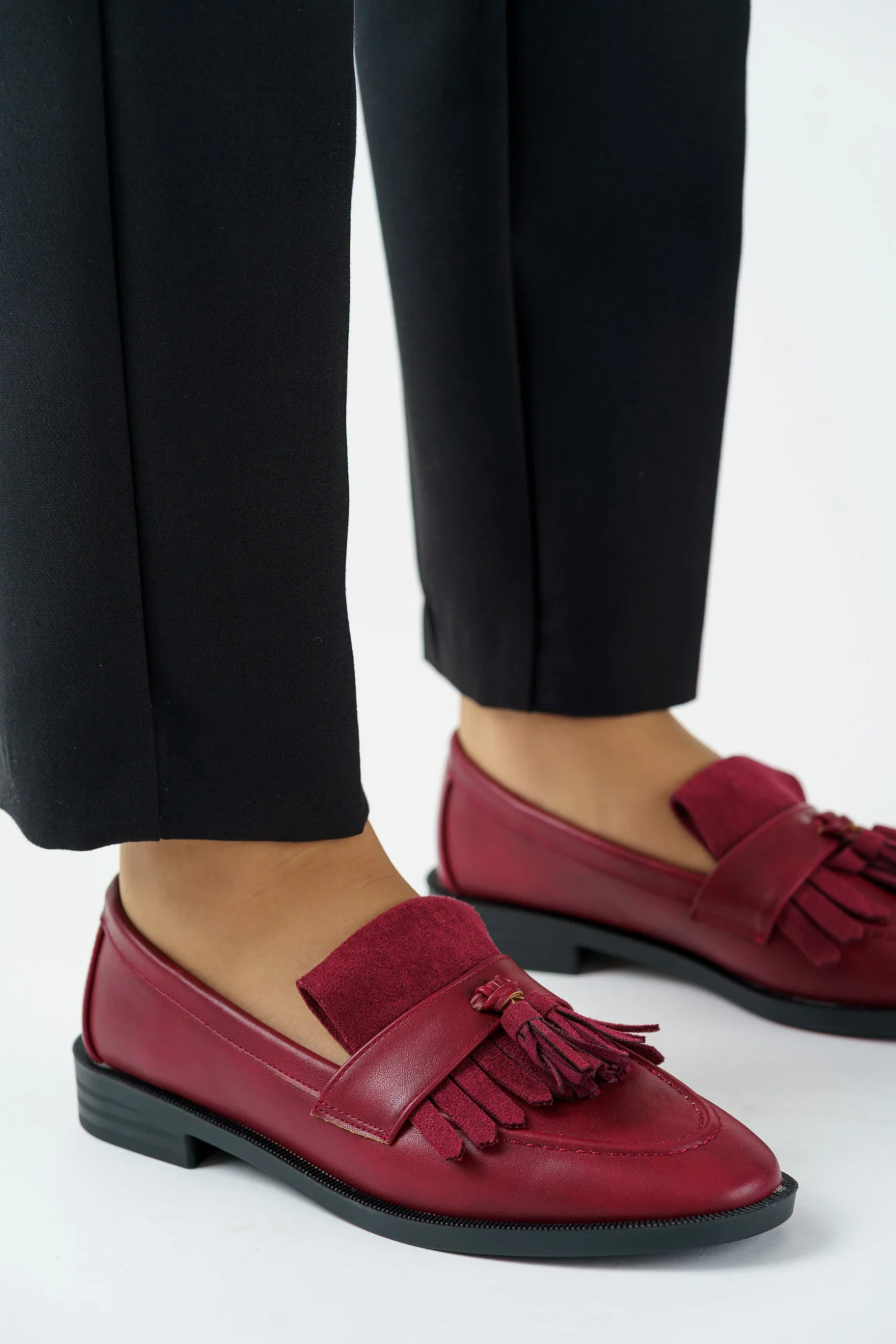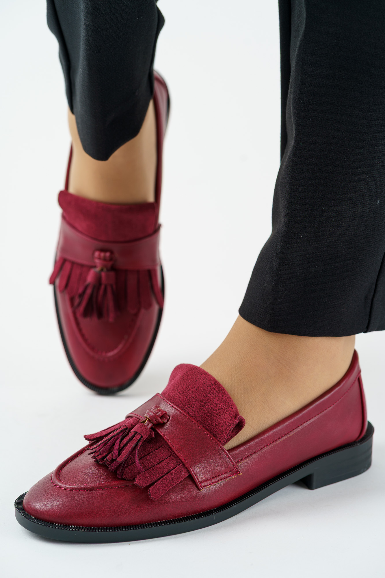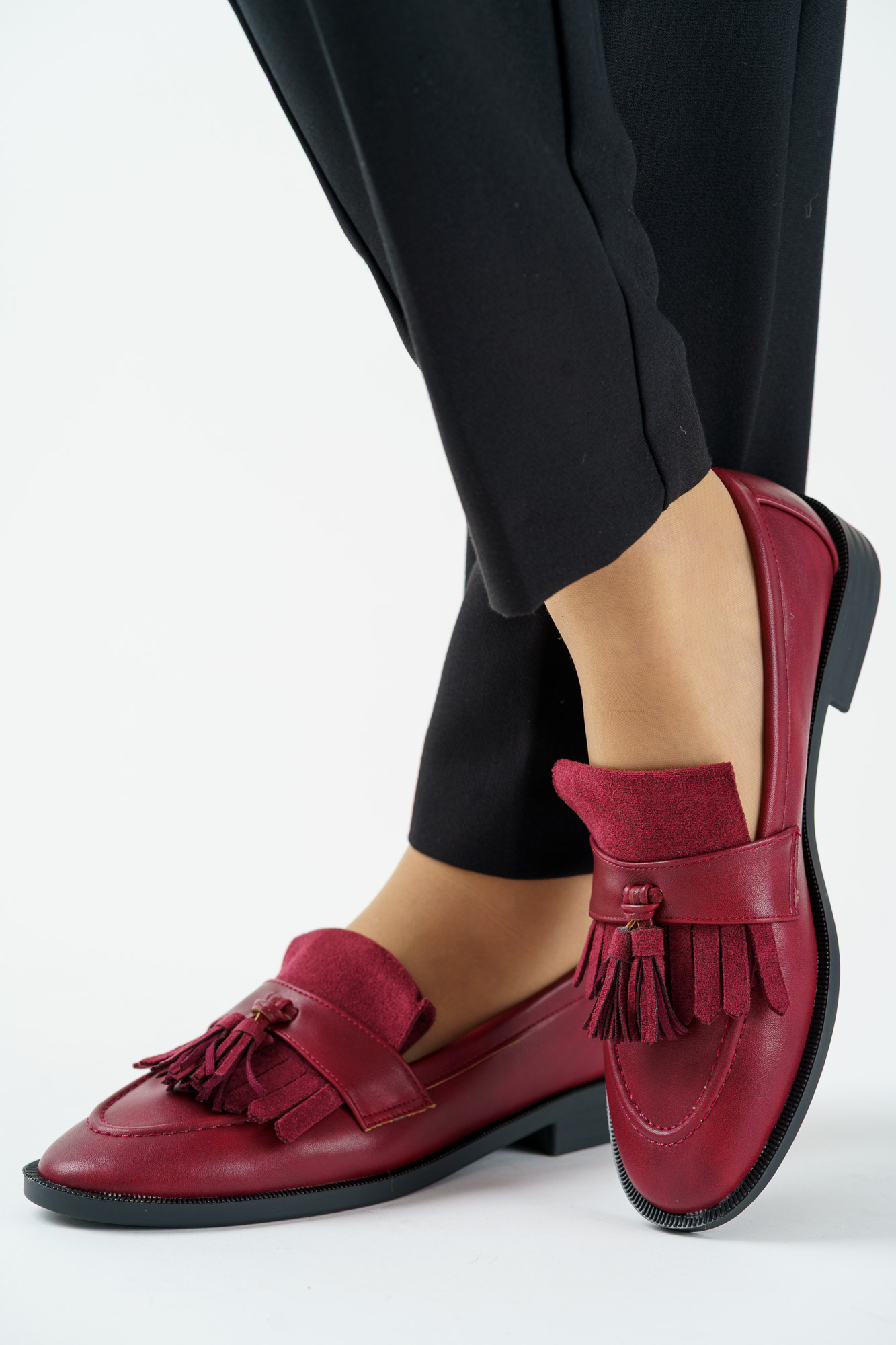 Napisz pierwszą opinię o „Mokasyny damskie na płaskim spodzie bordowe z frędzlem”