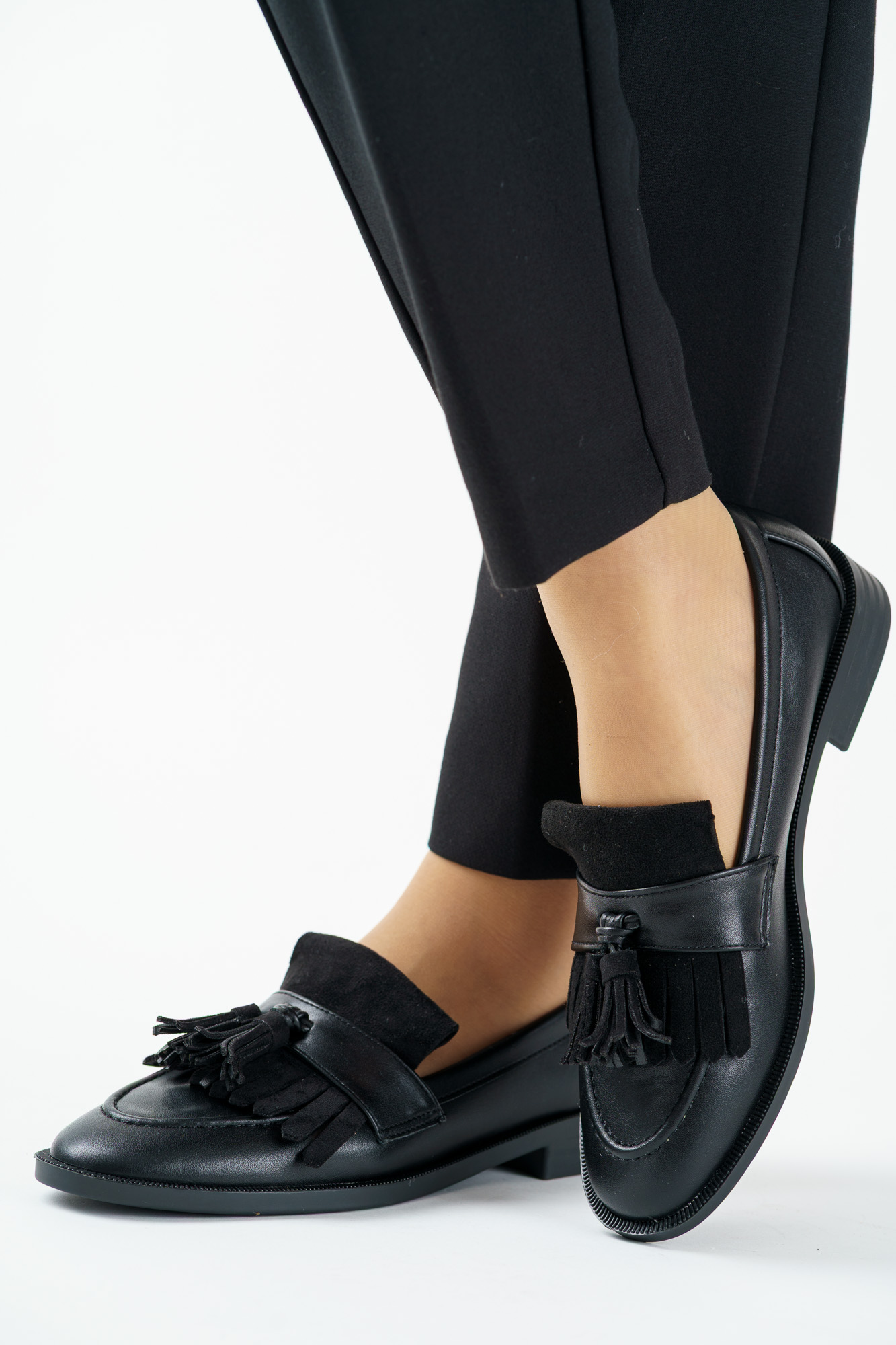 Sklep Mokasyny damskie na płaskim spodzie czarne z frędzlem