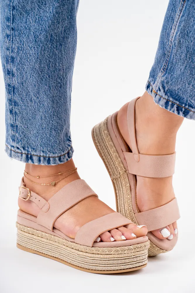 Sandały damskie na platformie beżowe na paski