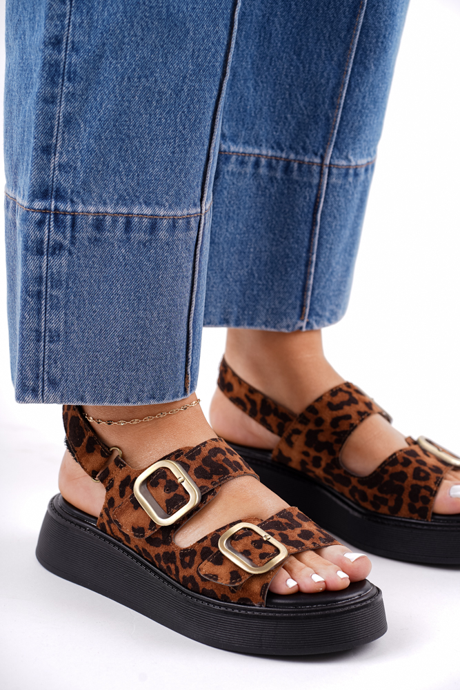 Sklep Sandały damskie w panterkę na platformie z regulowanymi paskami