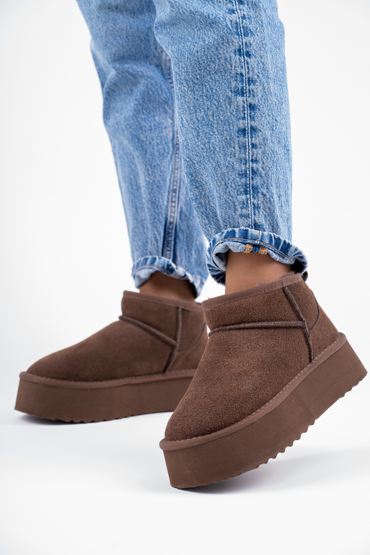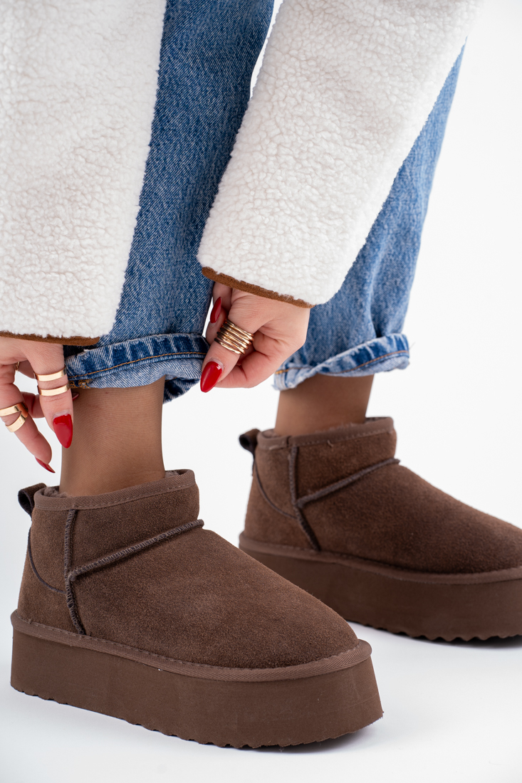 Sklep Skórzane czekoladowe śniegowce damskie na platformie