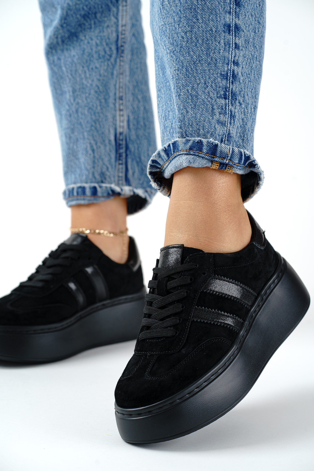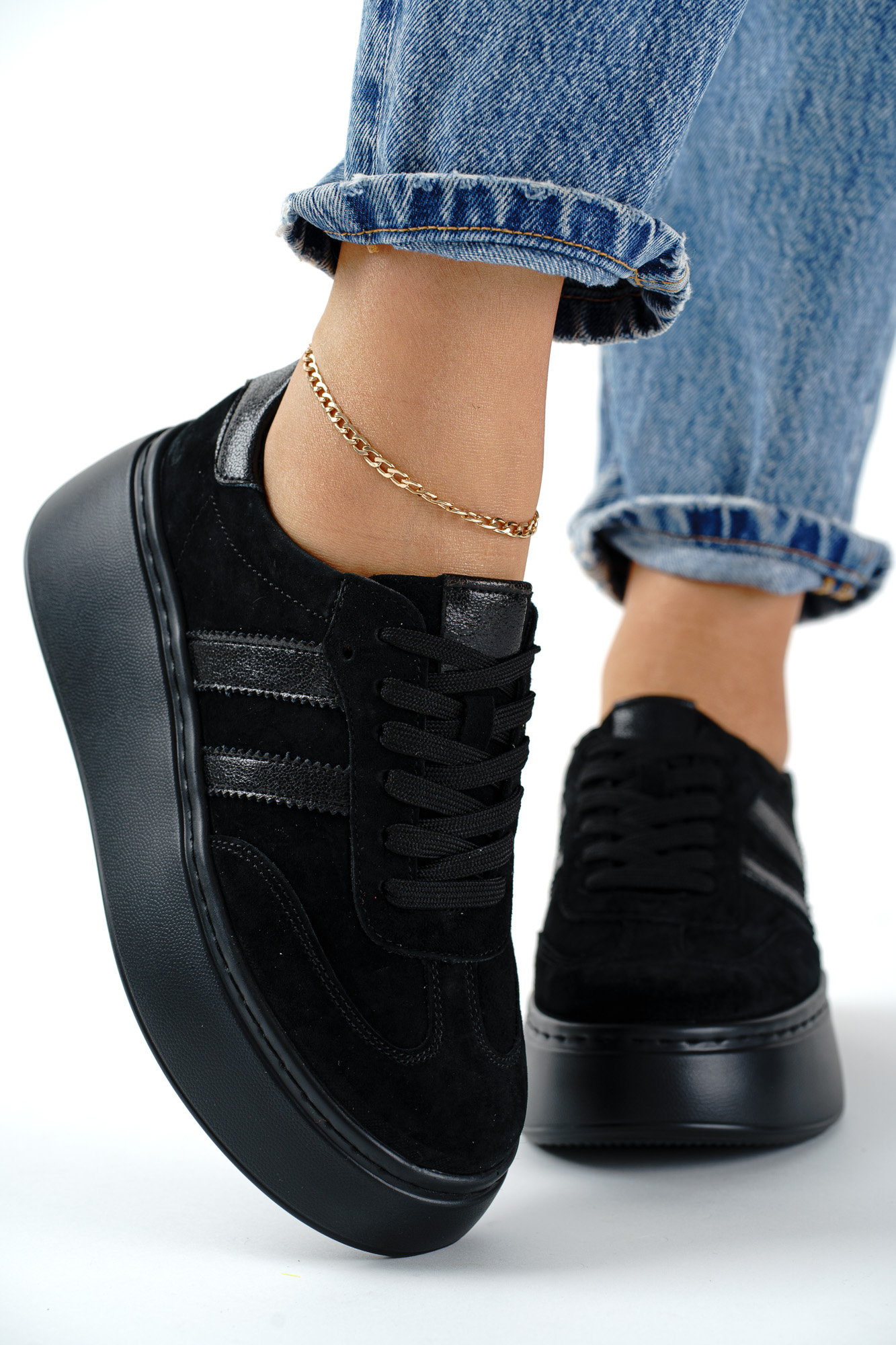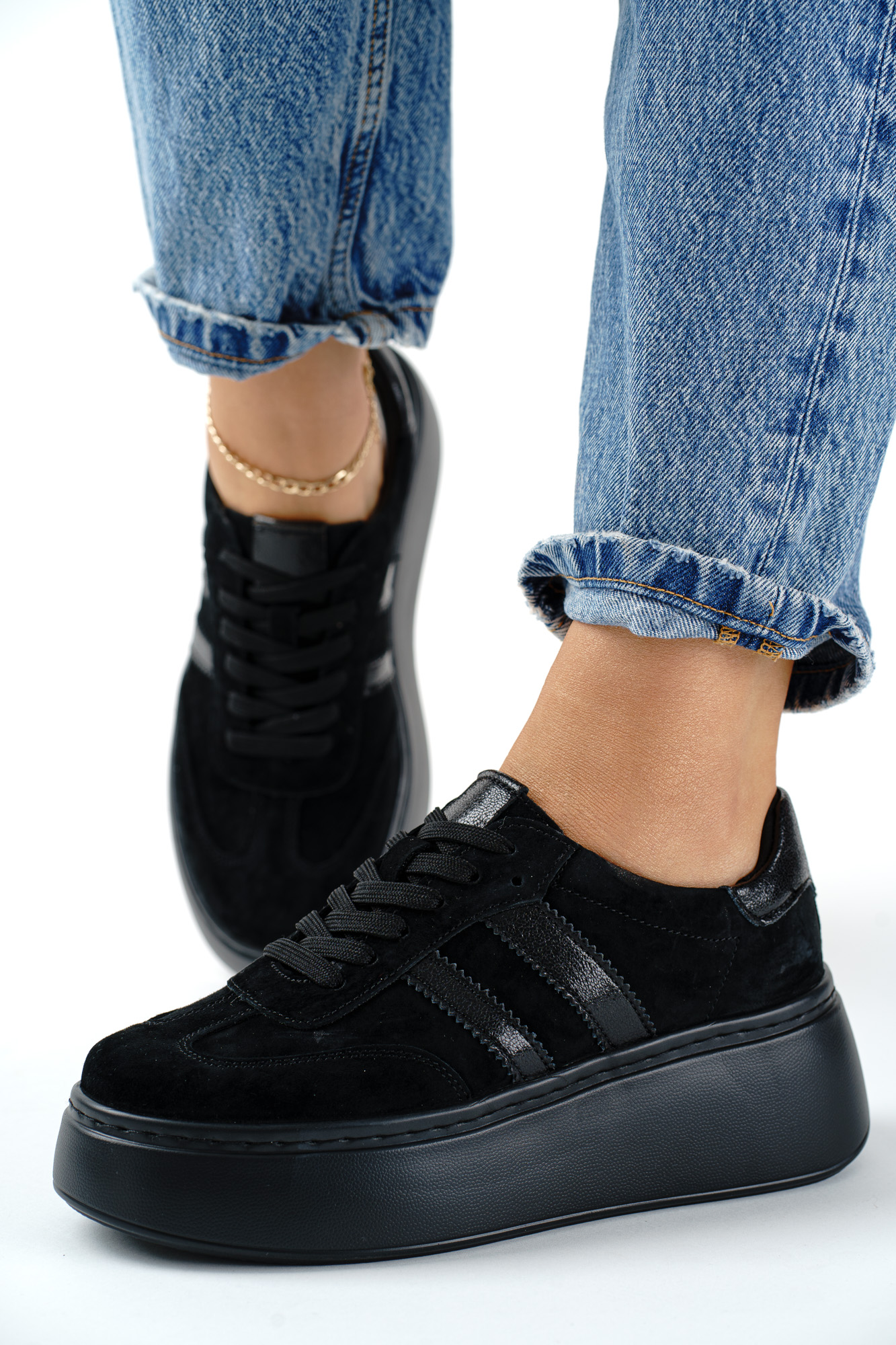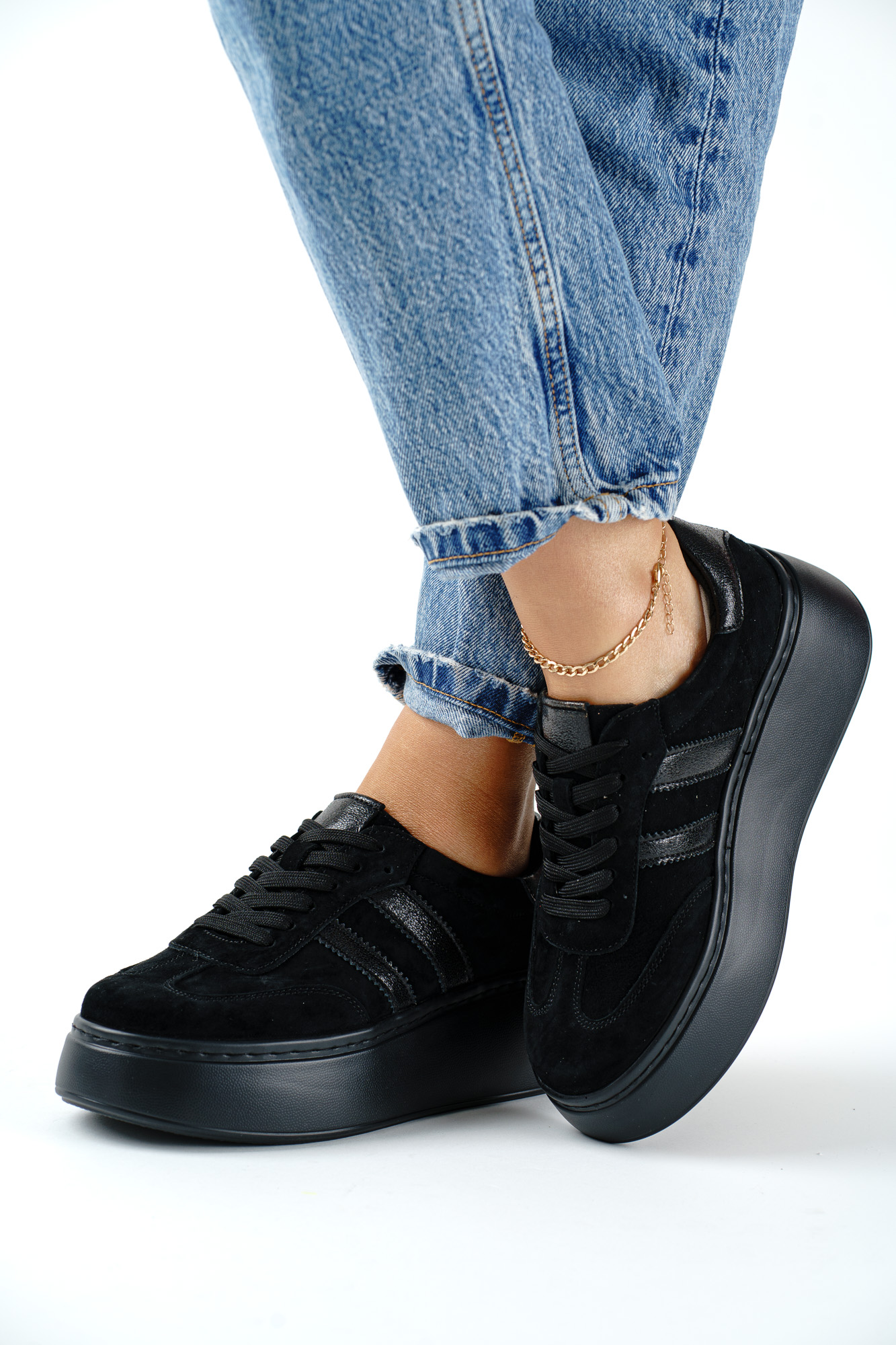 Czarne sneakersy wykonane z naturalnej skóry, łączące komfort noszenia z ponadczasowym stylem.