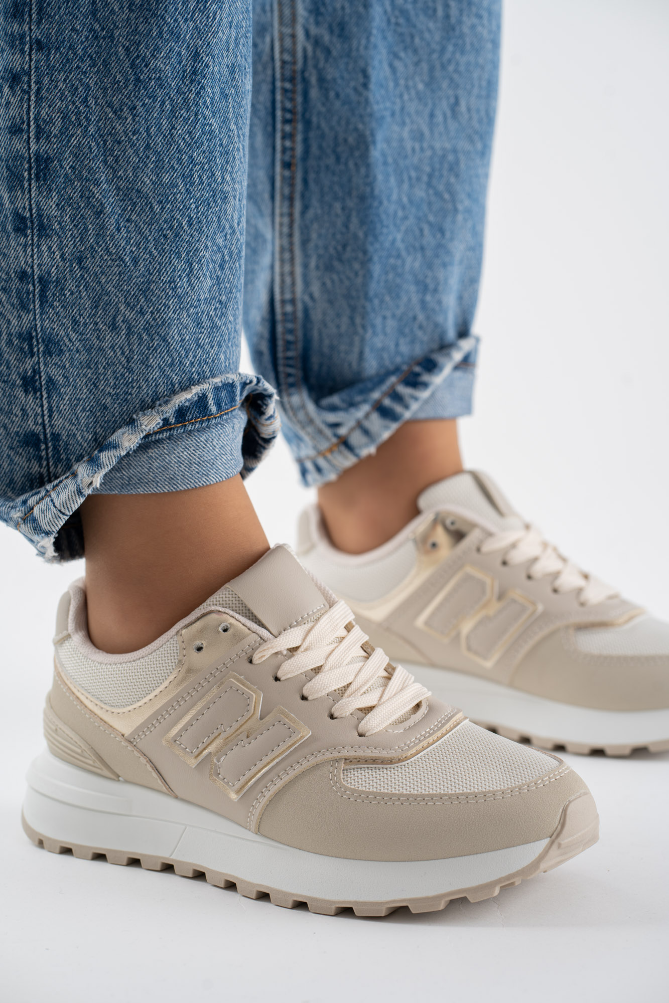 Sklep Sneakersy damskie buty sportowe beżowe New style