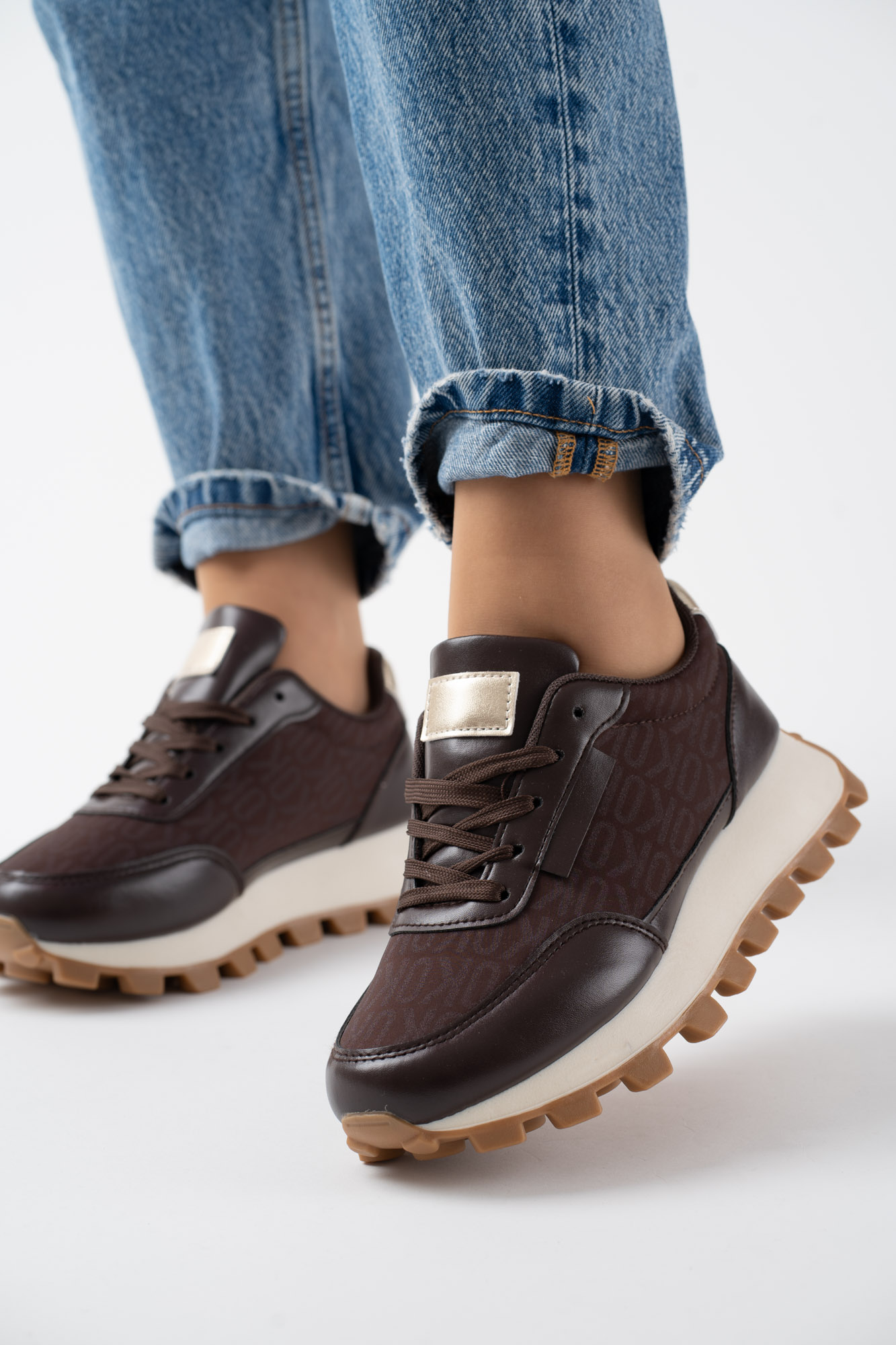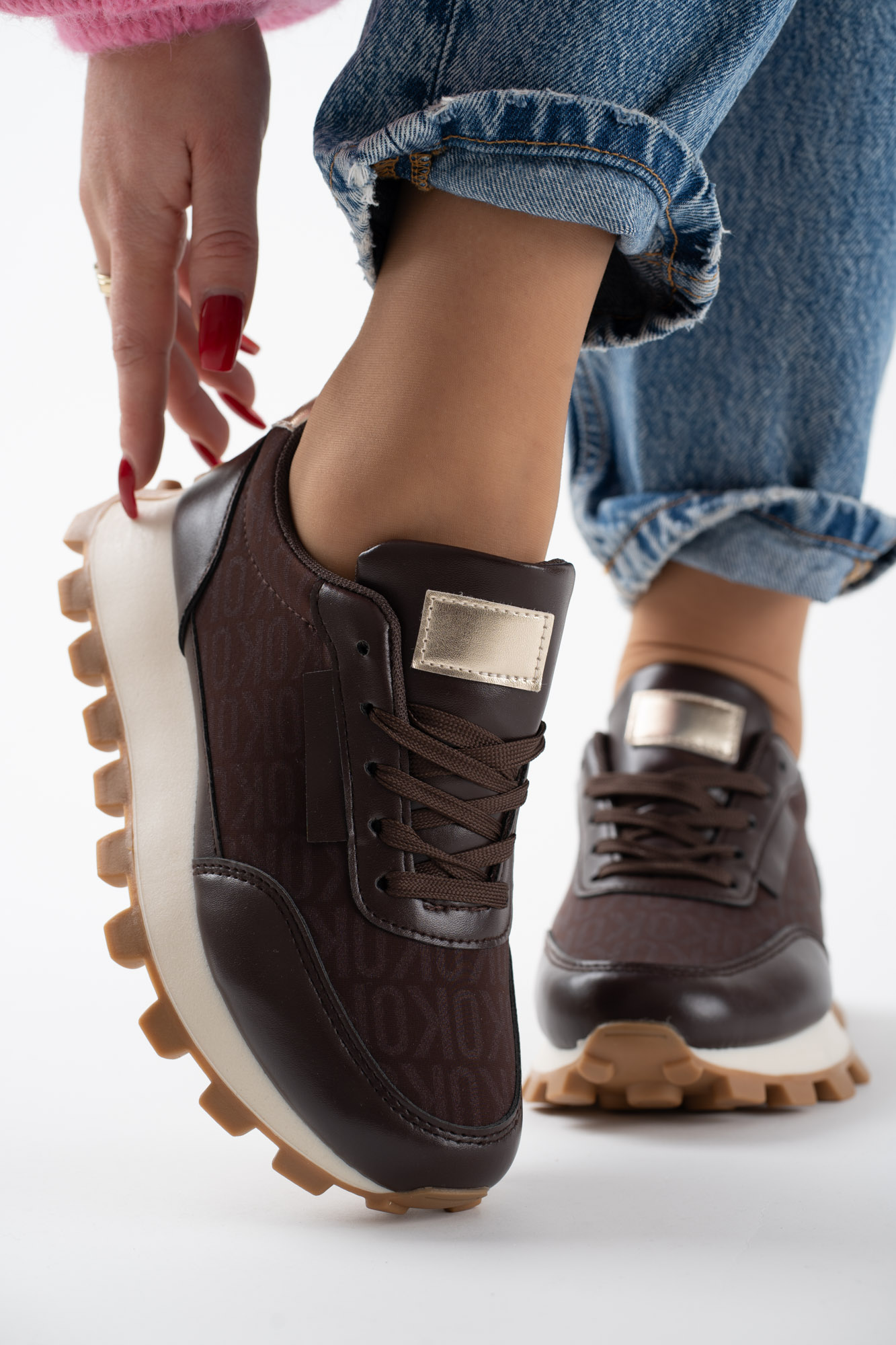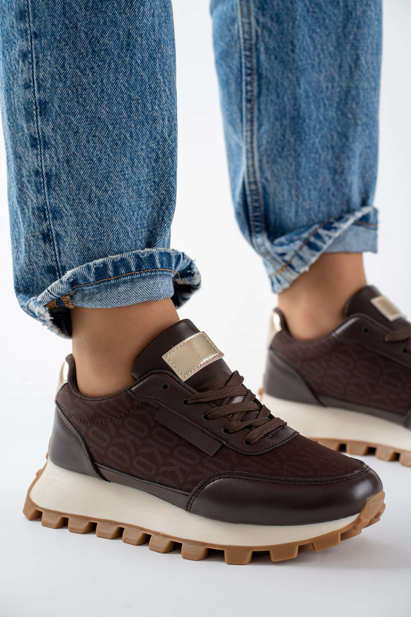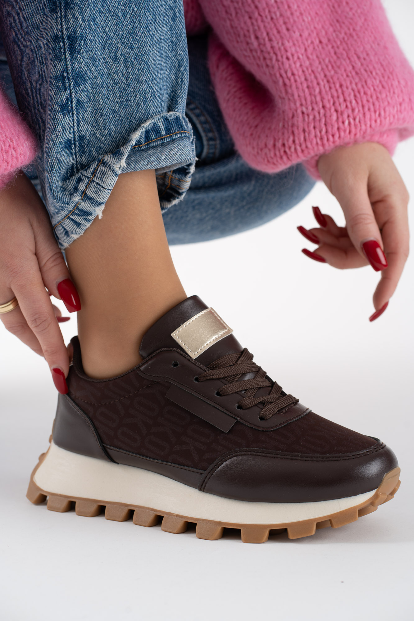Sneakersy damskie Buty Sportowe Brązowe na podwyższeniu