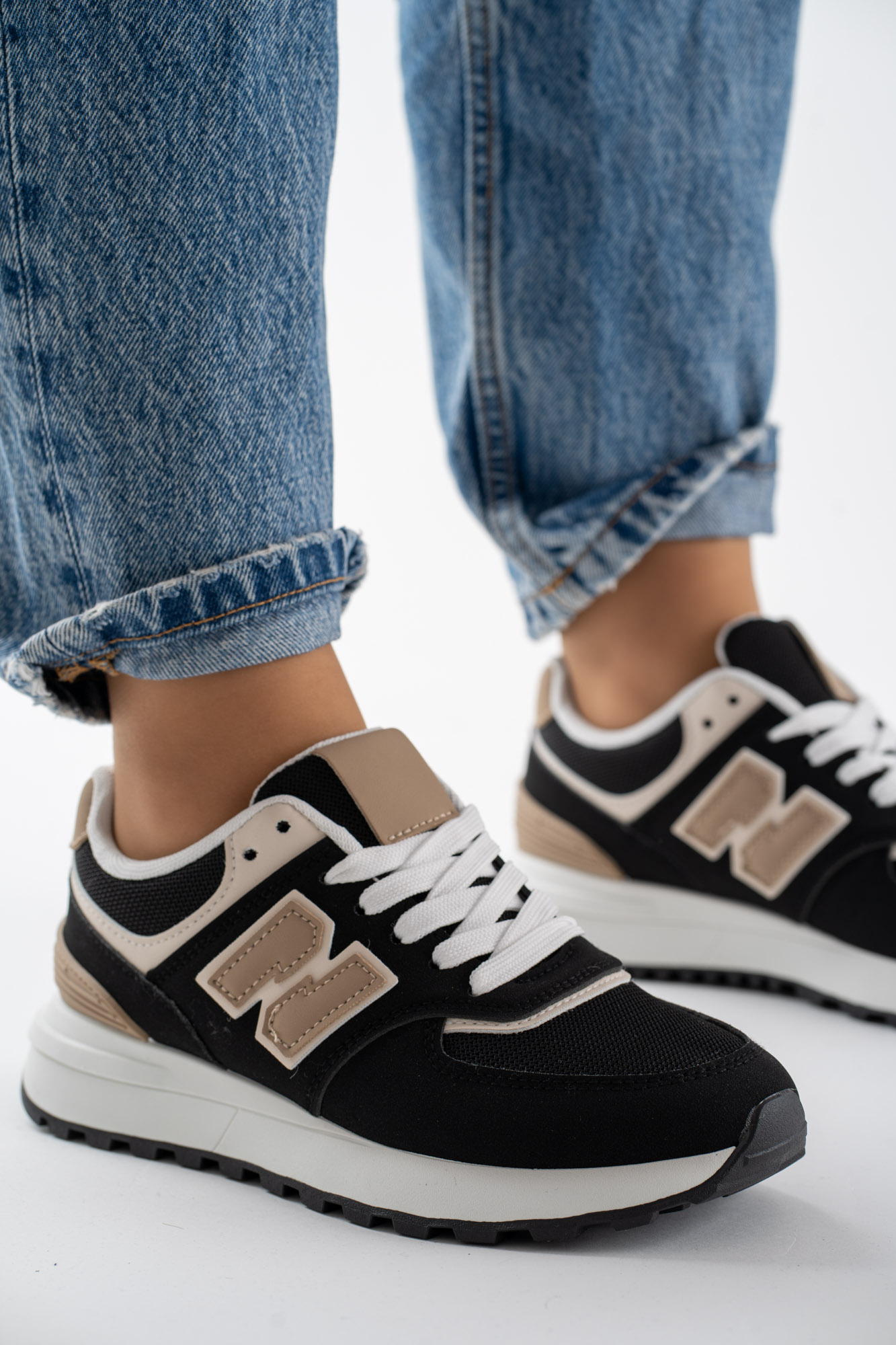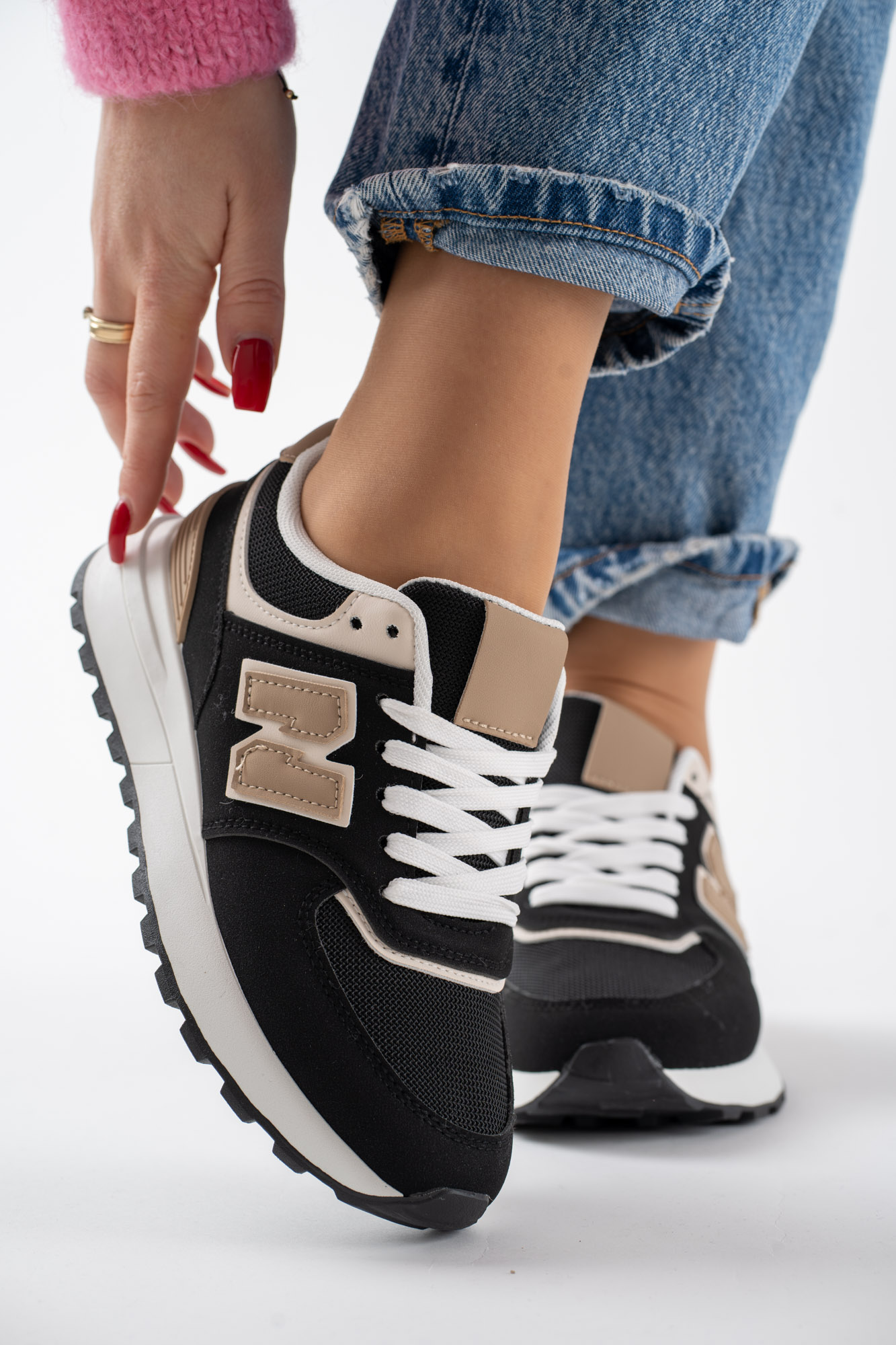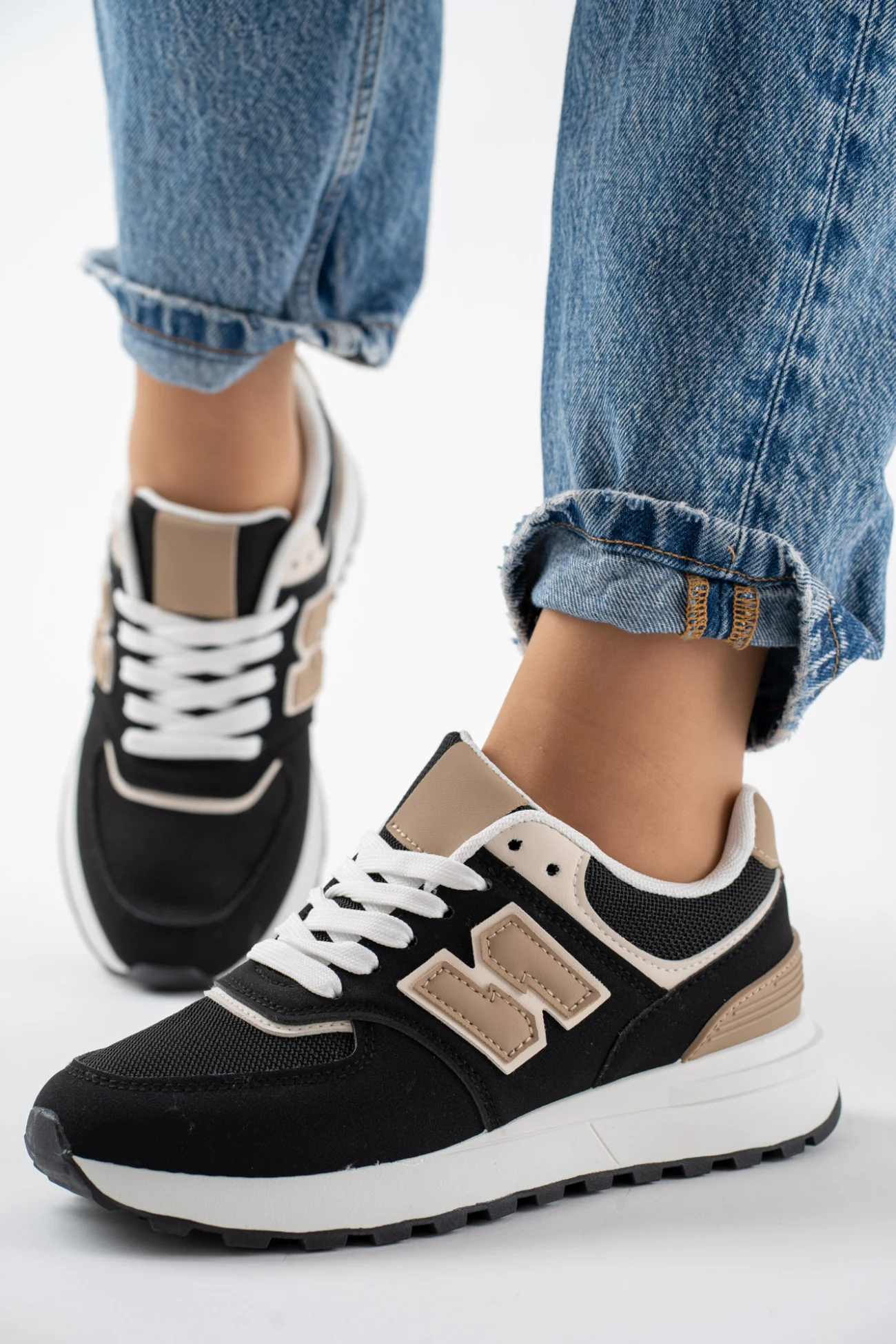 Czarne Wiązane Sportowe Buty Damskie Lena