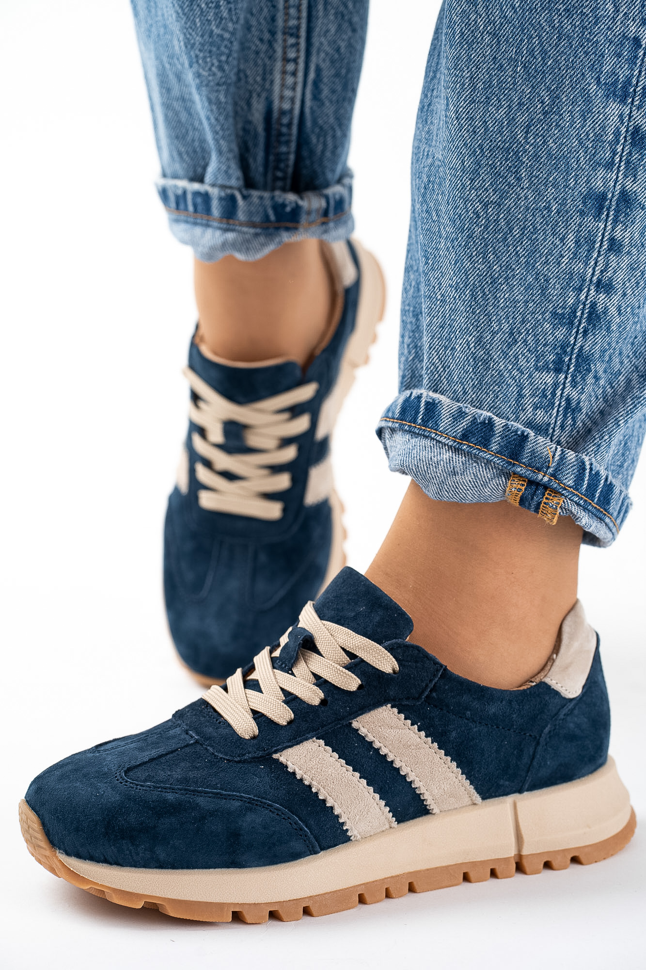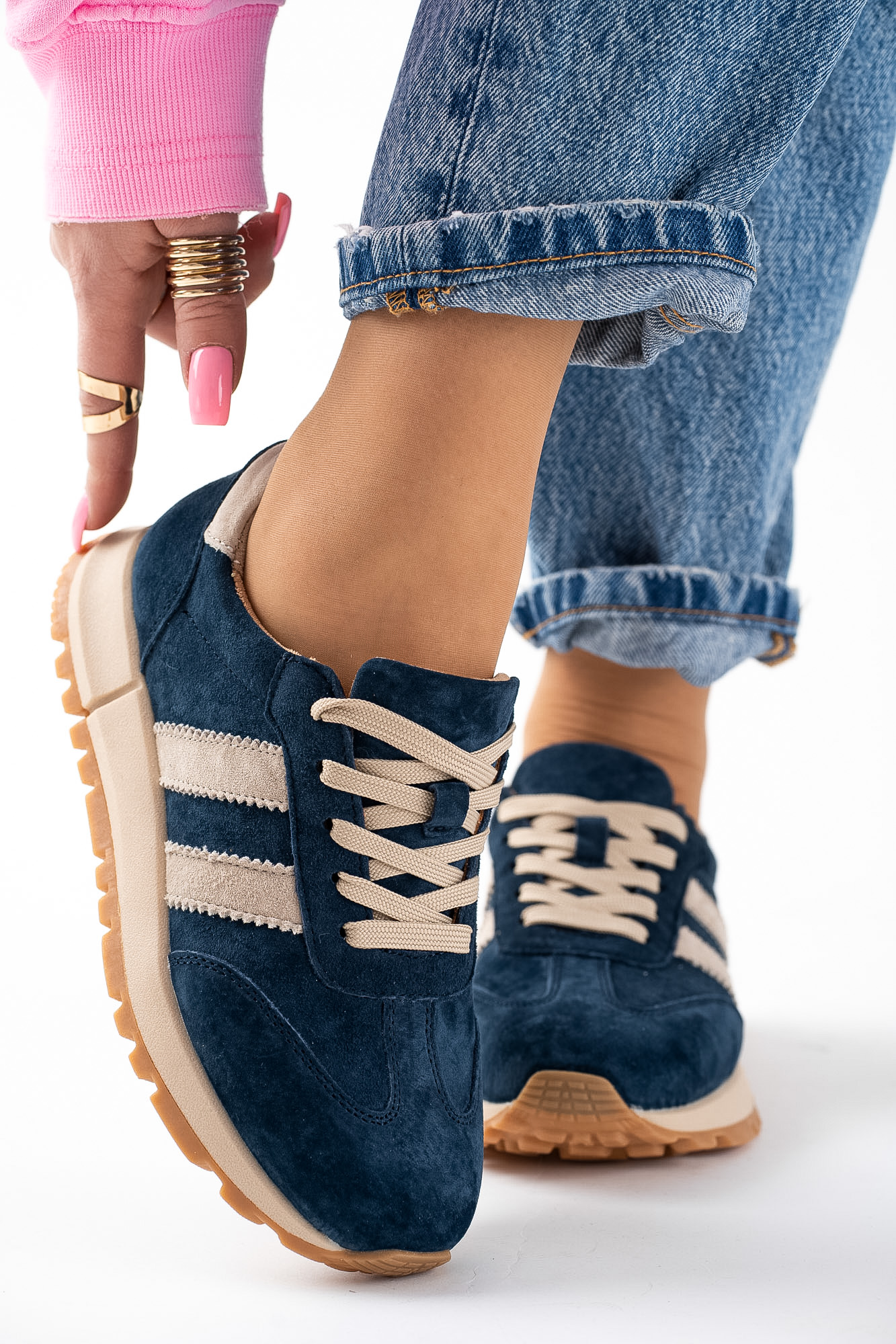 Sneakersy damskie skórzane granatowe wygodne buty na co dzień