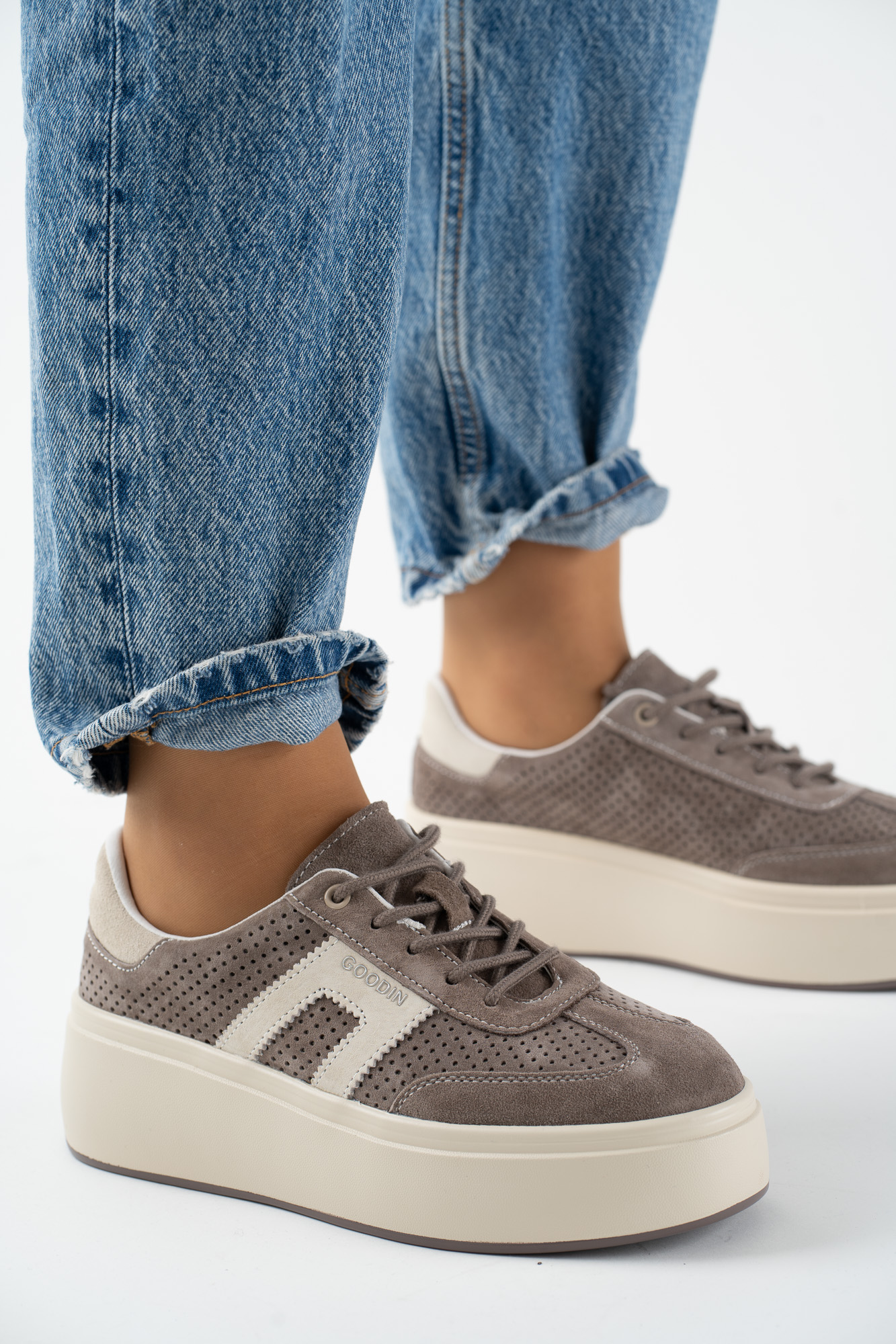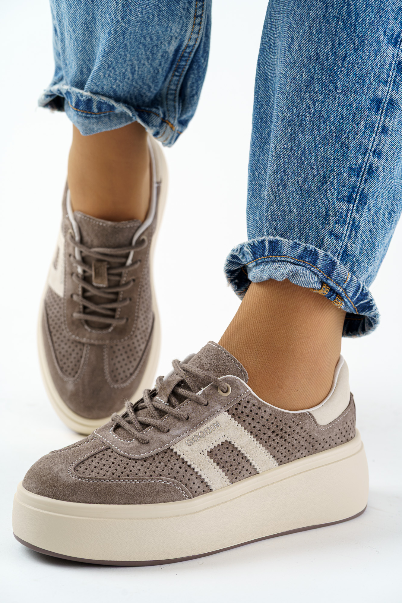 Skórzane sneakersy damskie na platformie w sportowym stylu.