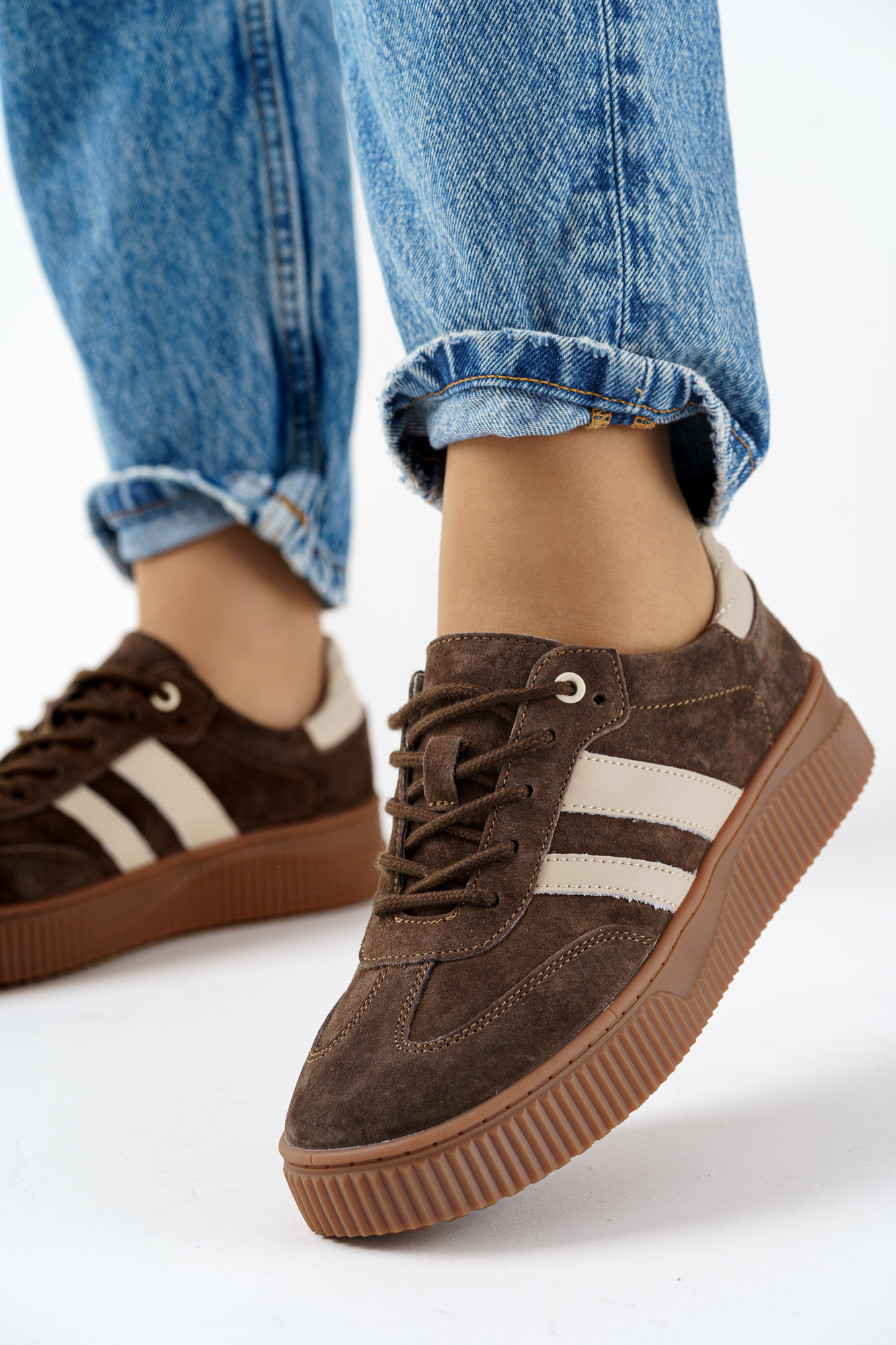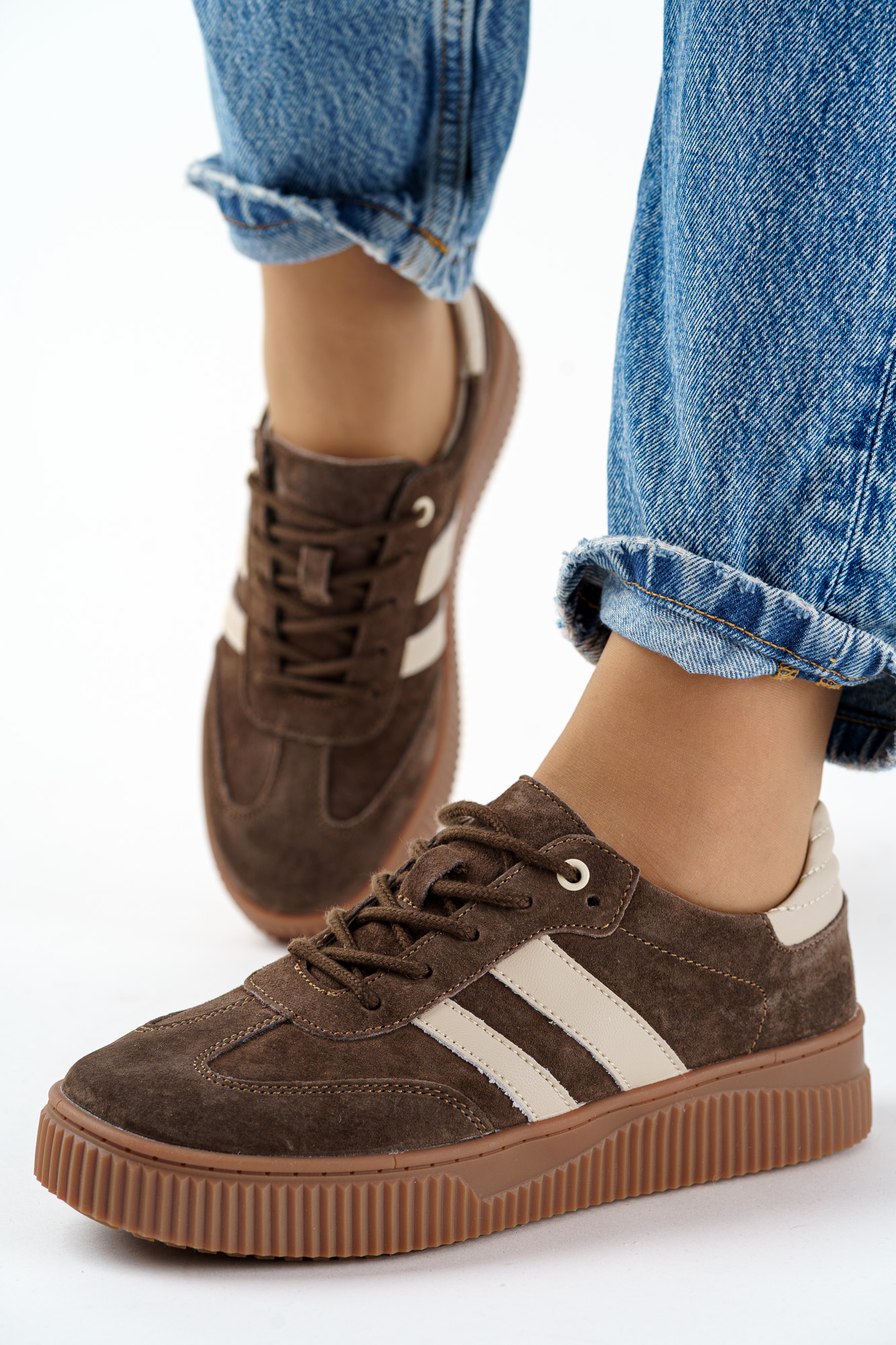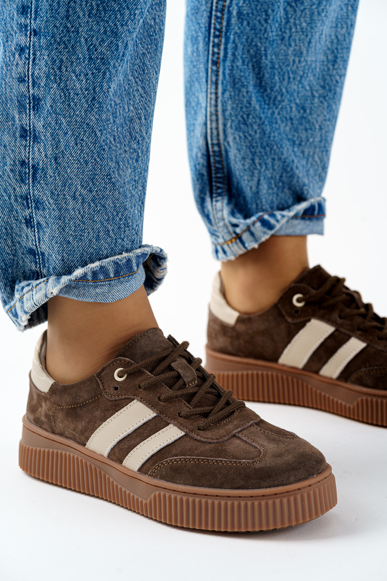 Napisz pierwszą opinię o „Sneakersy skórzane buty sportowe damskie brązowe na platformie”