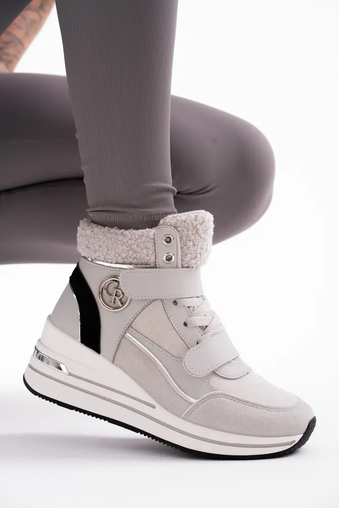 Sklep Szare botki sneakersy na koturnie ocieplane