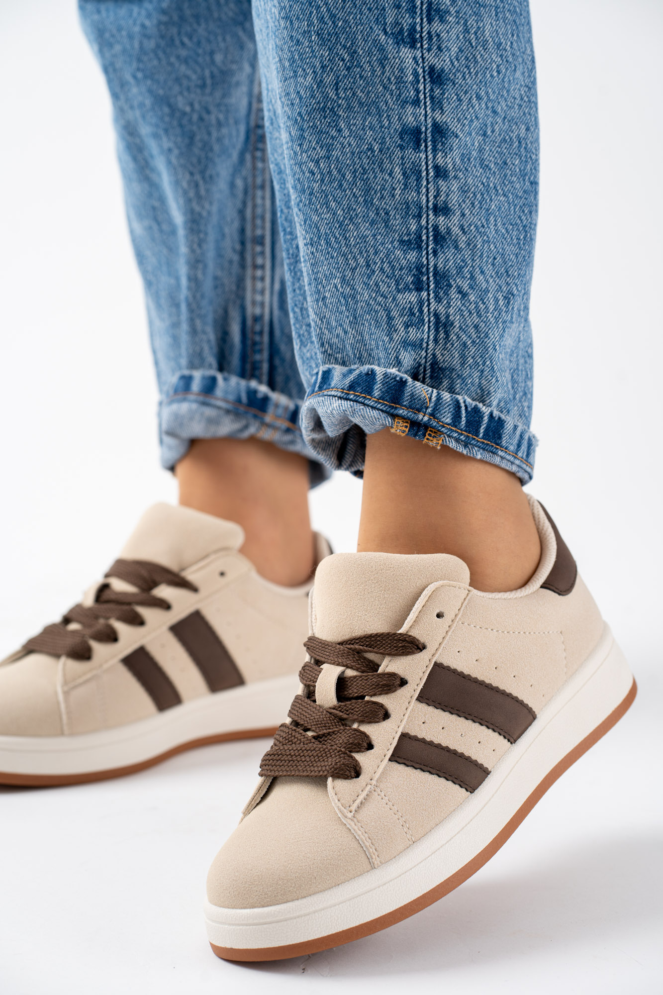 Trampki damskie beżowo brązowe