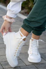 Białe trampki wysokie sznurowane –