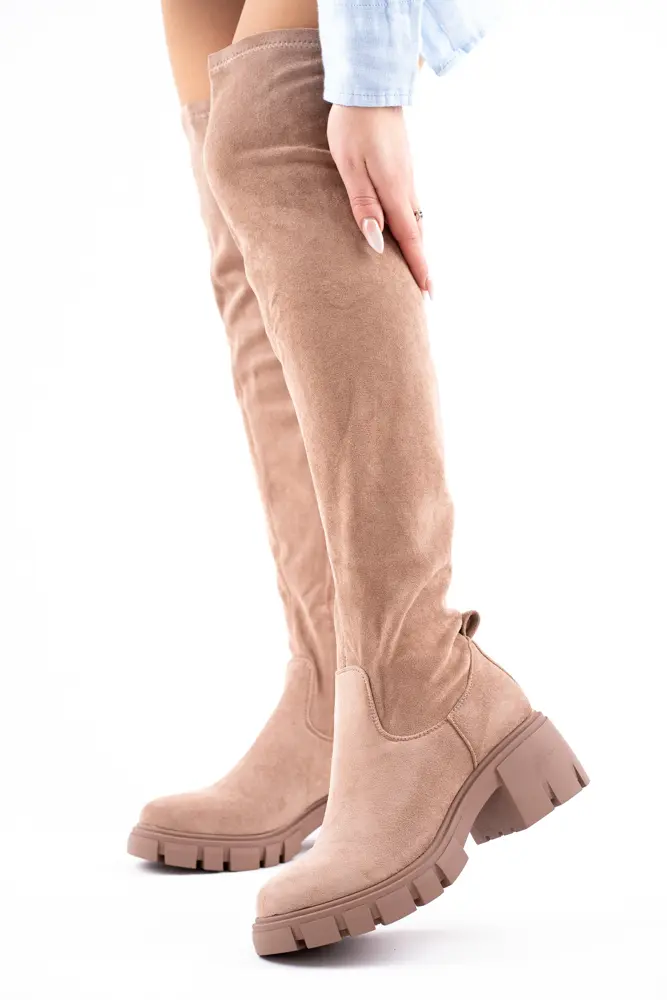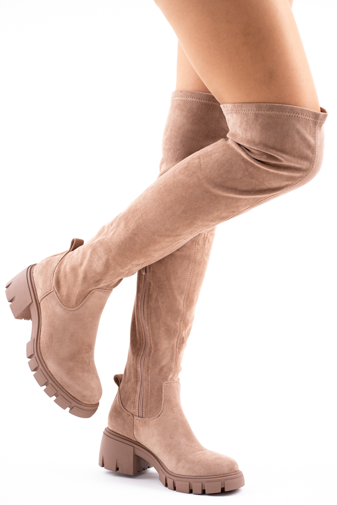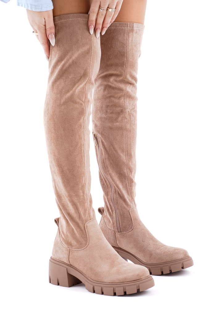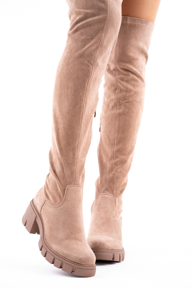 Sklep Zamszowe beżowe długie kozaki na płaskim obcasie Diane