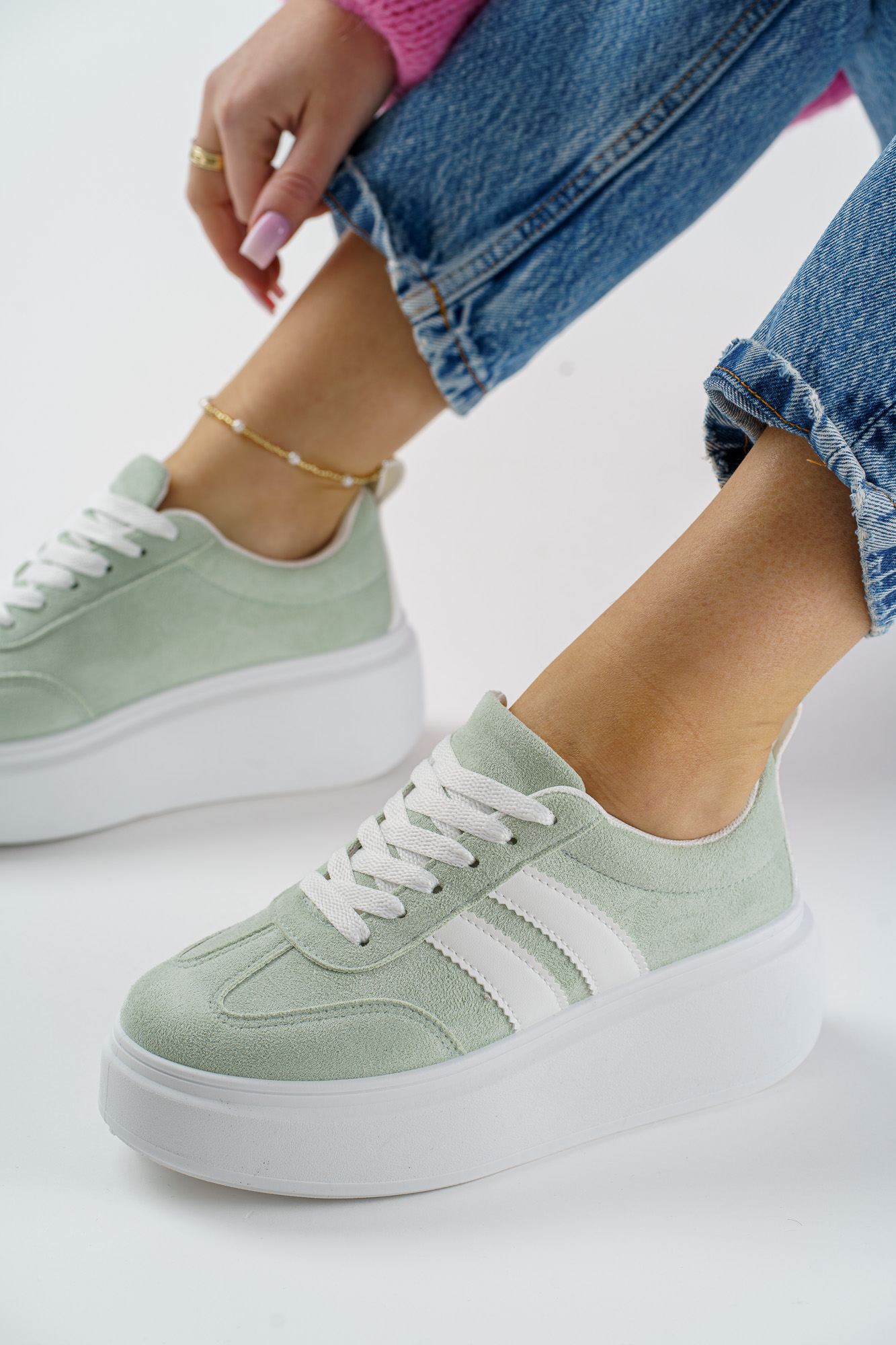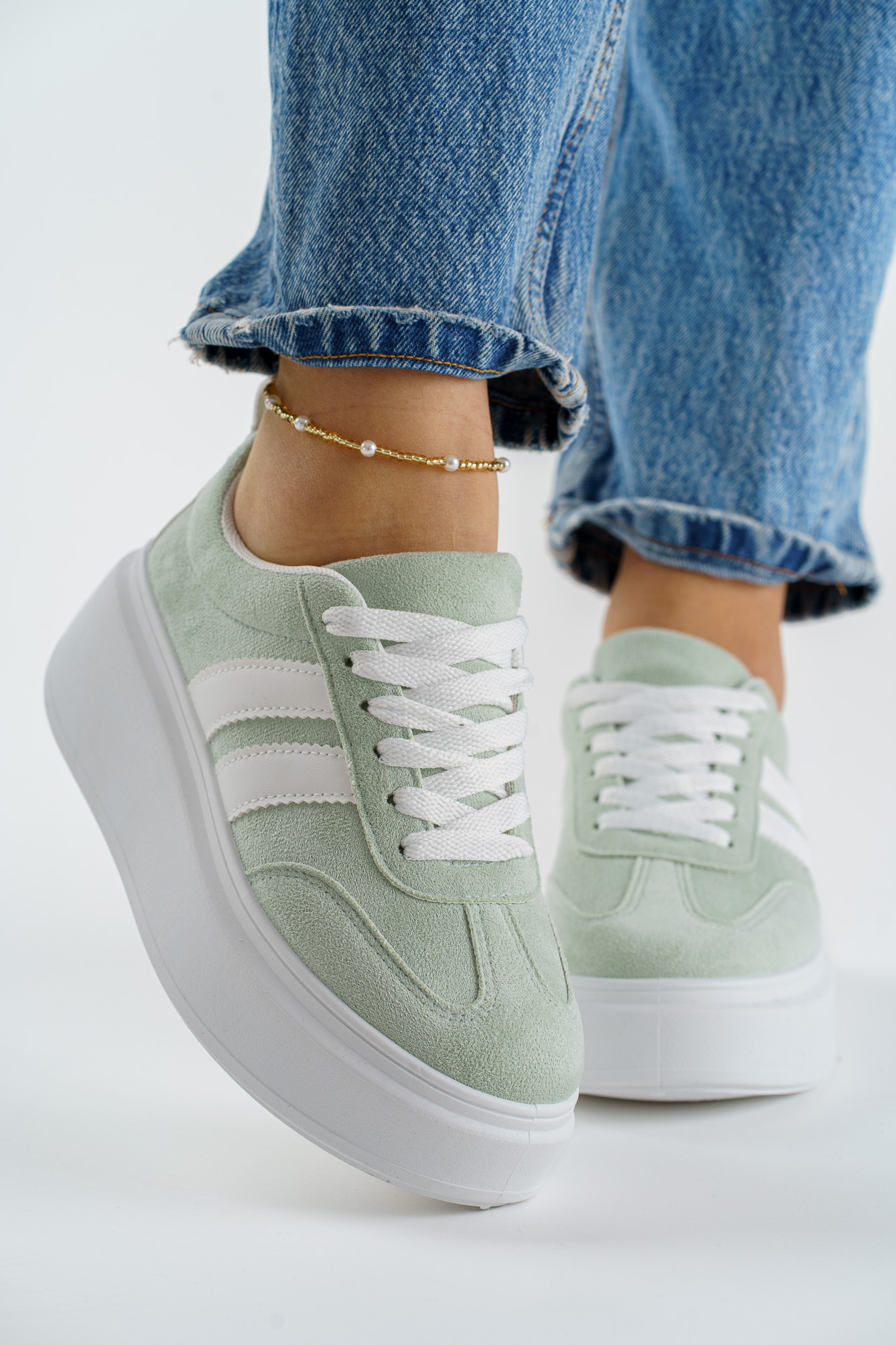 Stylowe zielone sneakersy damskie wykonane z miękkiego zamszu.