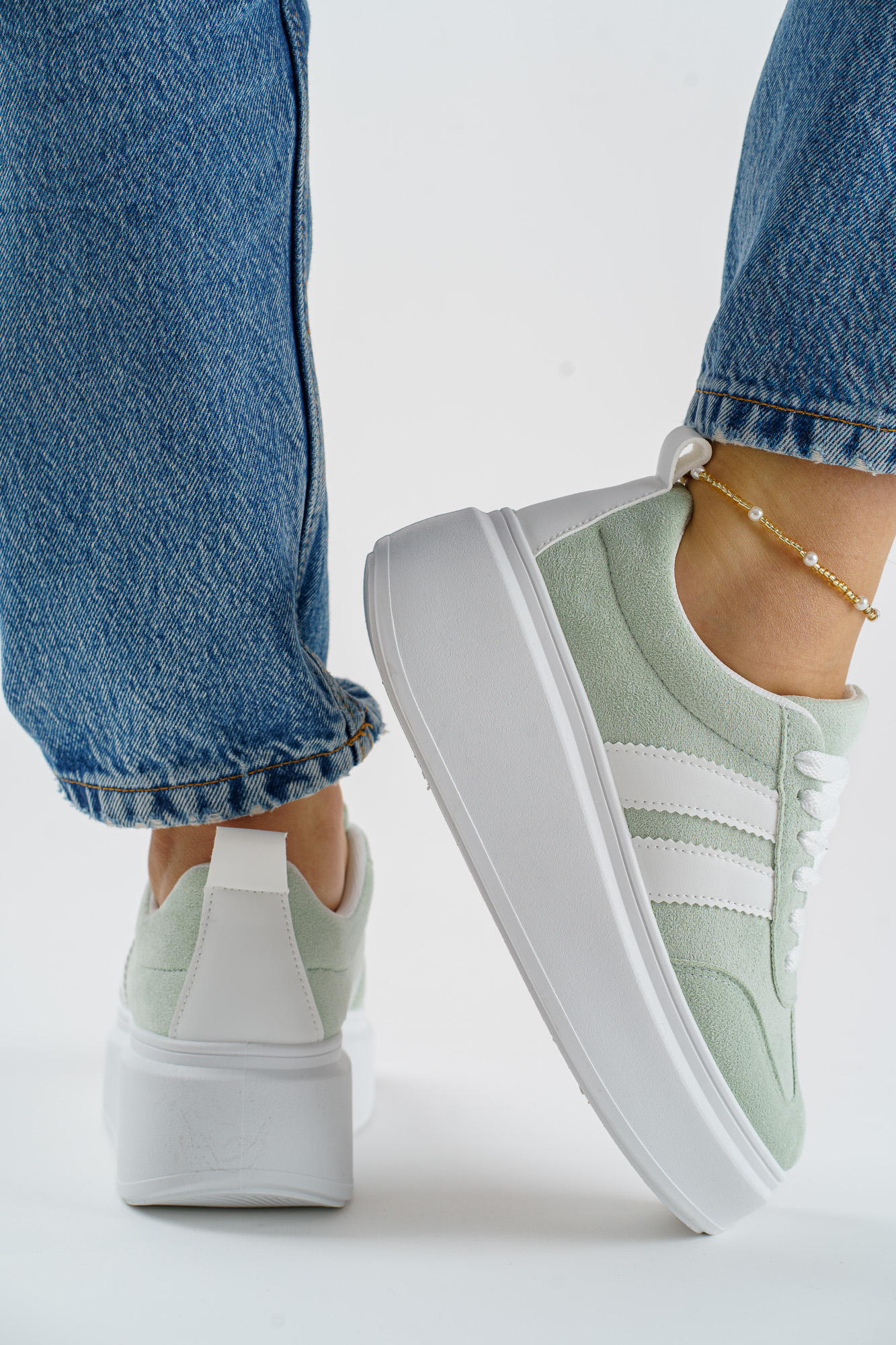 Sklep Zielone sneakersy damskie zamszowe na platformie – modne i wygodne