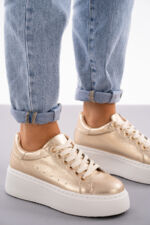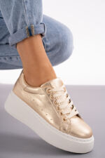 Eleganckie złote trampki na grubym spodzie