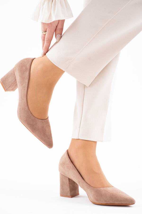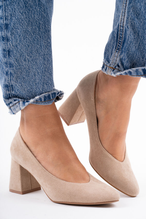 Brązowe zamszowe czółenka damskie na słupku