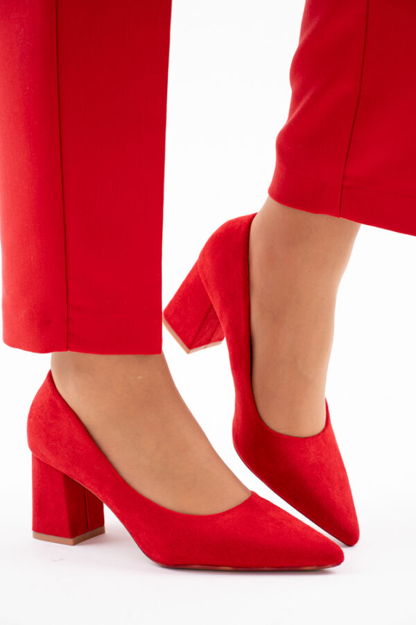Czerwone zamszowe czółenka damskie na słupku