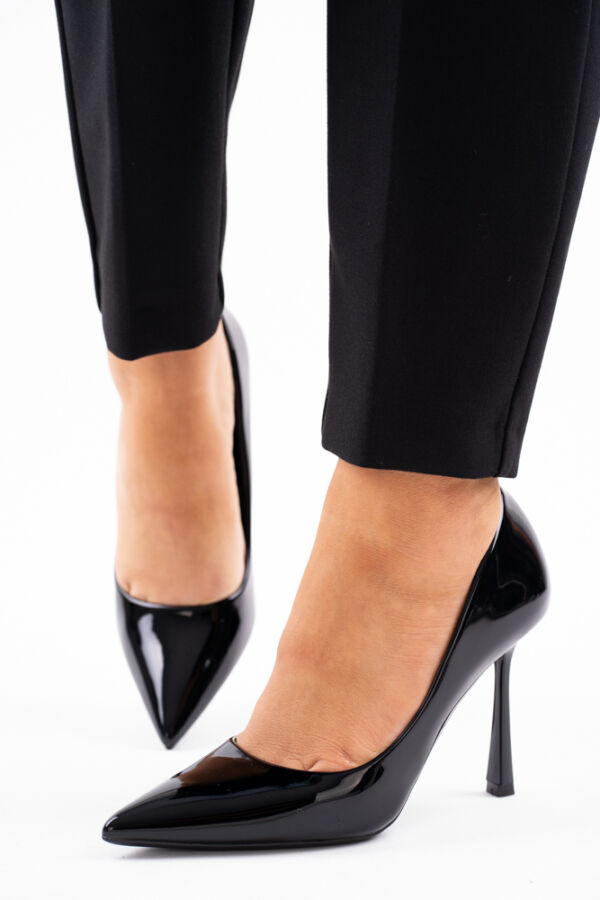 Czarne zamszowe czółenka damskie na niskim obcasie z wycięciem