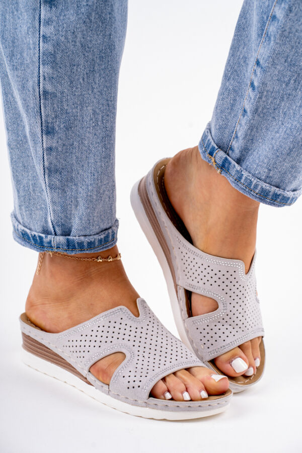 Szare klapki damskie na niskiej koturnie