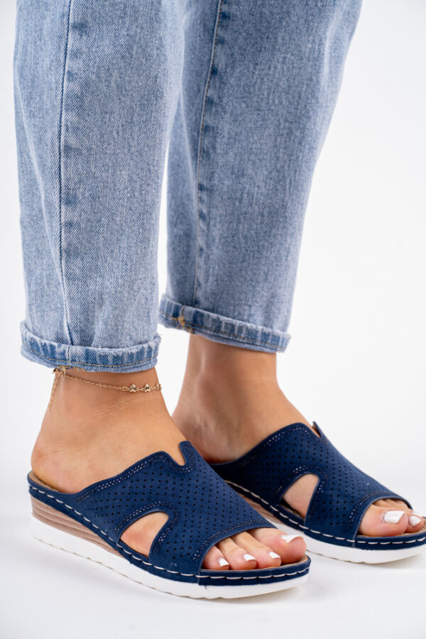 Granatowe klapki damskie na niskiej koturnie