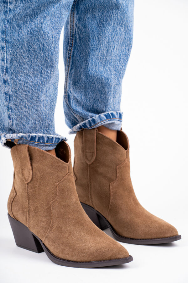 Brązowe botki kowbojki damskie ze skóry naturalnej