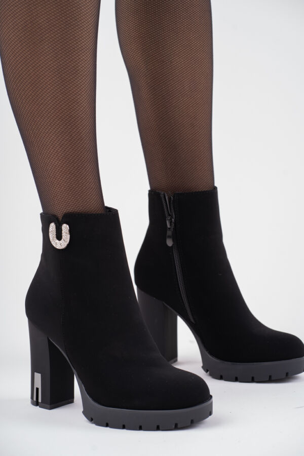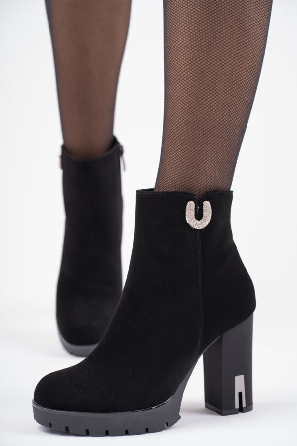 Czarne zamszowe botki damskie na wysokim obcasie