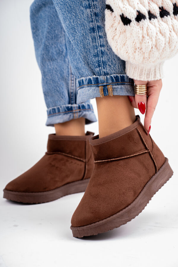Ciemno Brązowe zamszowe krótkie śniegowce damskie