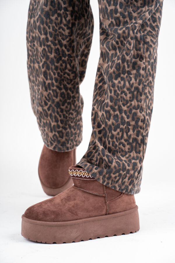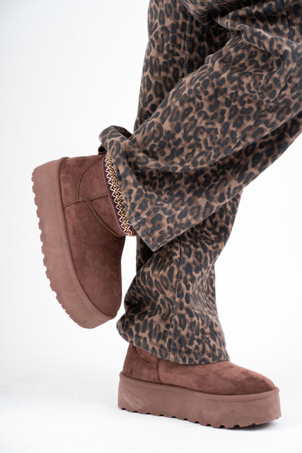 Czekoladowe śniegowce damskie na platformie