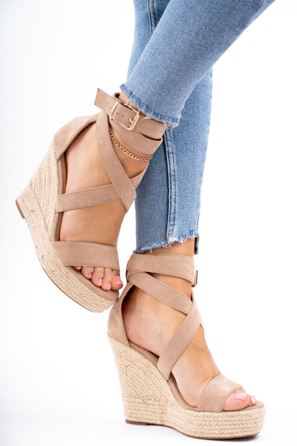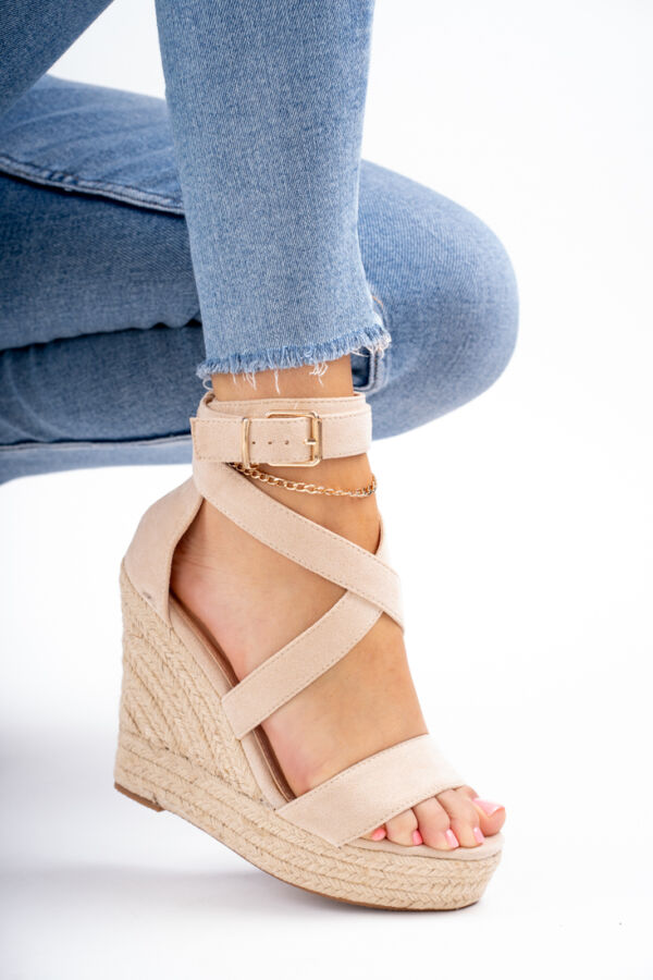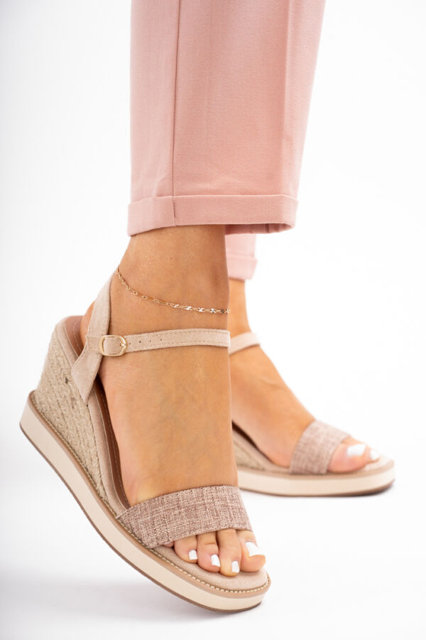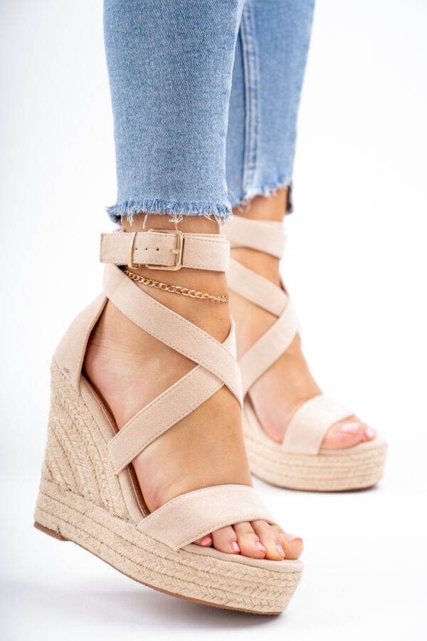 Beżowe sandały damskie na koturnie Tolles