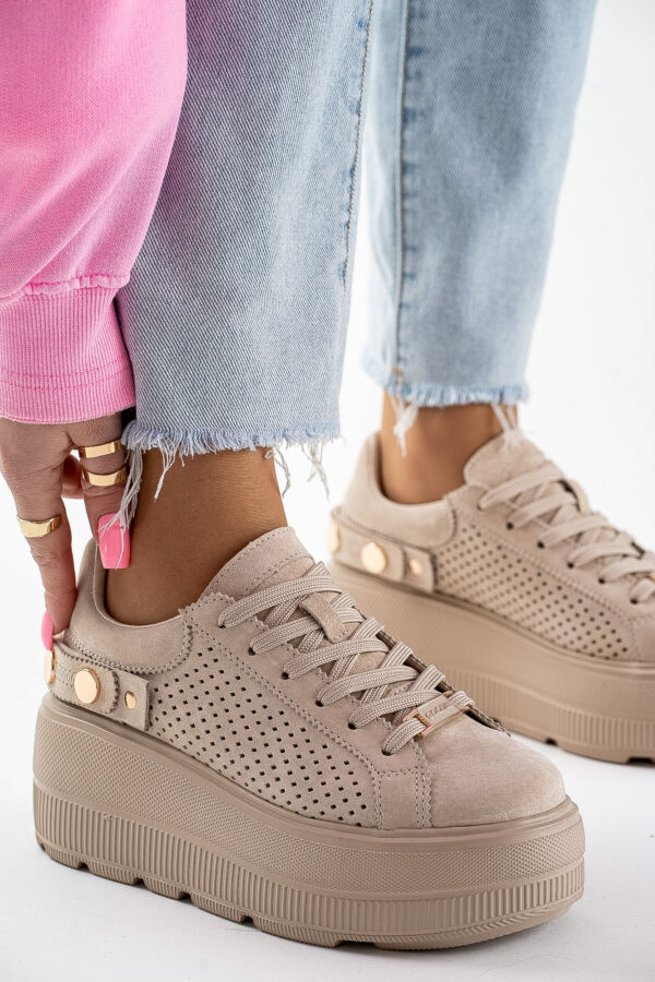 Sneakersy damskie skórzane na platformie buty sportowe beżowe