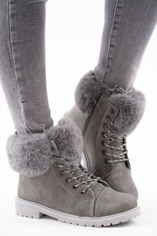 Szare ocieplane botki z futerkiem w sportowym stylu
