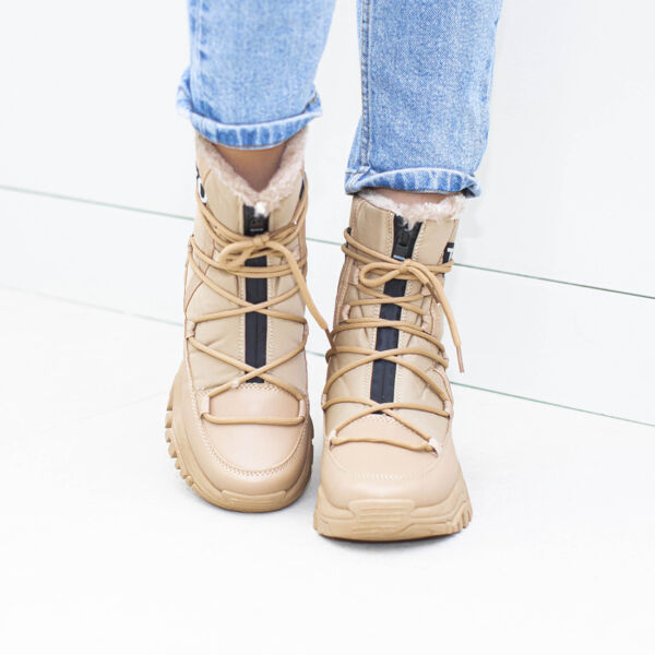 Beżowe Śniegowce Botki damskie ocieplane Dover