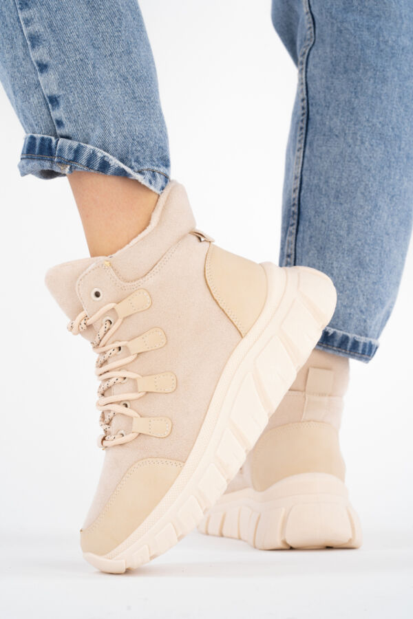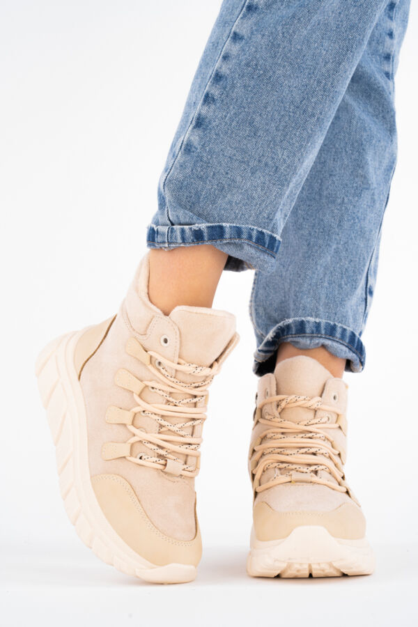 Damskie beżowe wysokie Botki z Emblematem Taigen