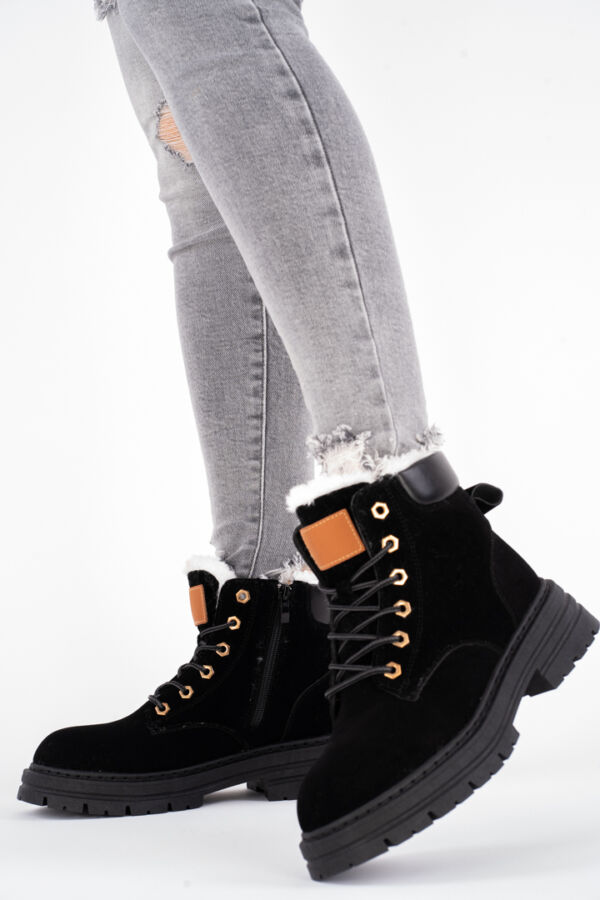 Czarne botki damskie zamszowe na płaskim spodzie z łańcuszkiem