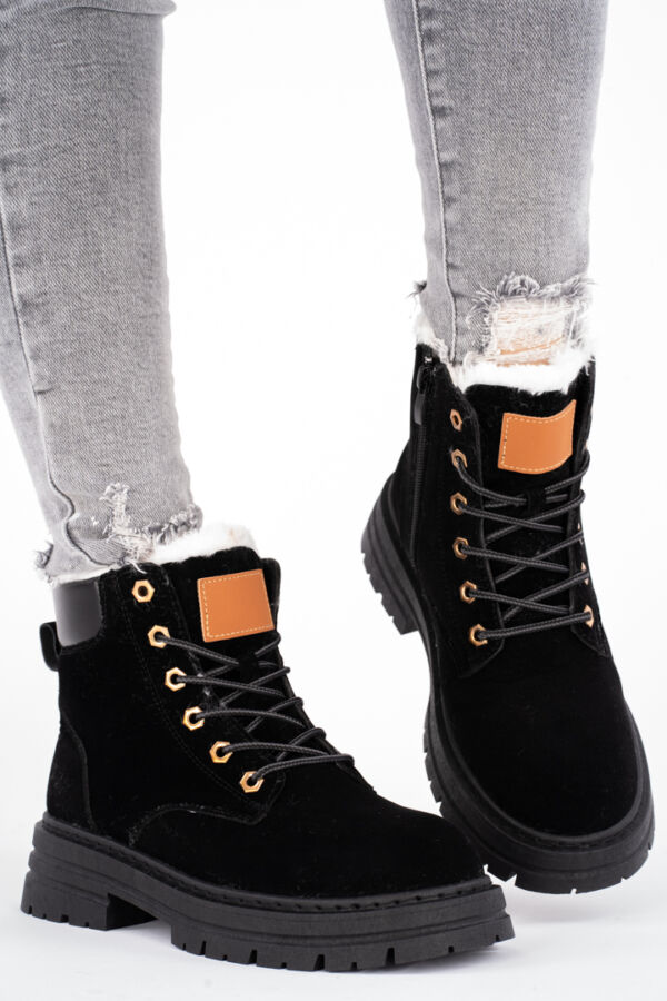 Czarne trapery botki śniegowce damskie z grubym futrem